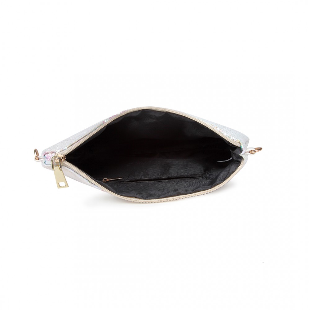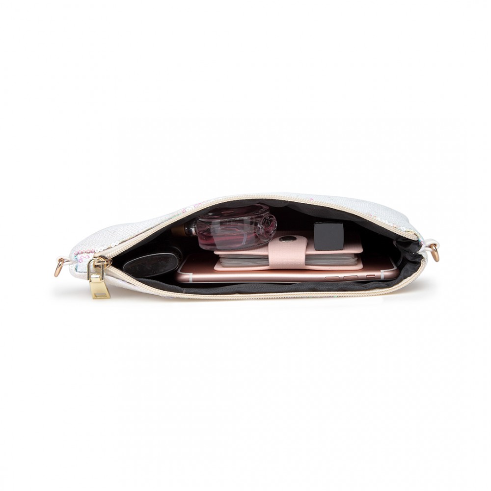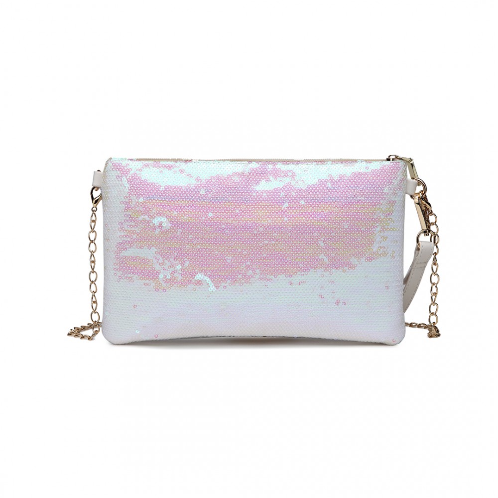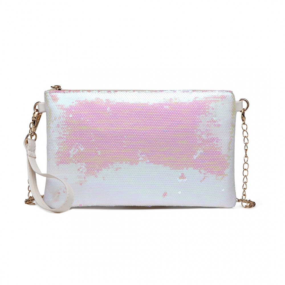 LH1765 WE- Fräulein Lulu Kettenriemen Satchel Shinning Clutch Bag mit Reißverschluss Gehäuse Weiß