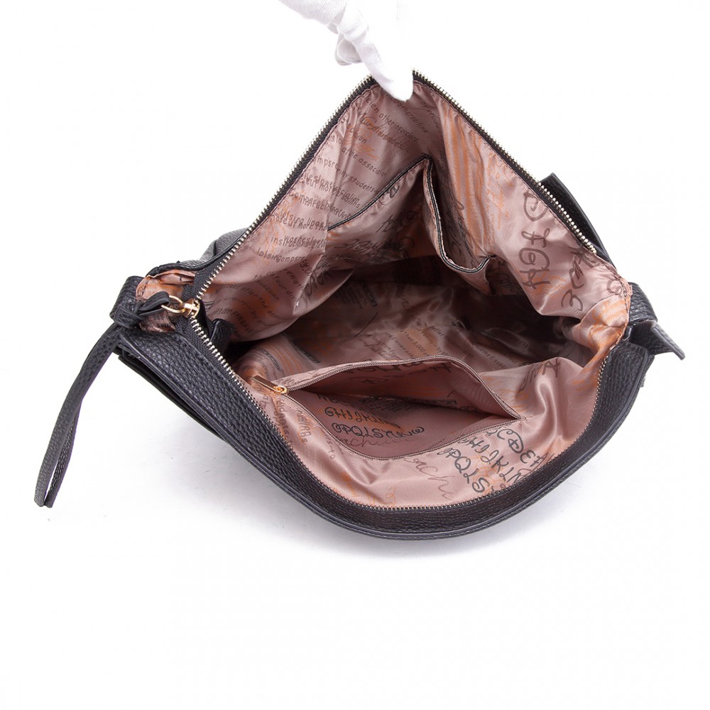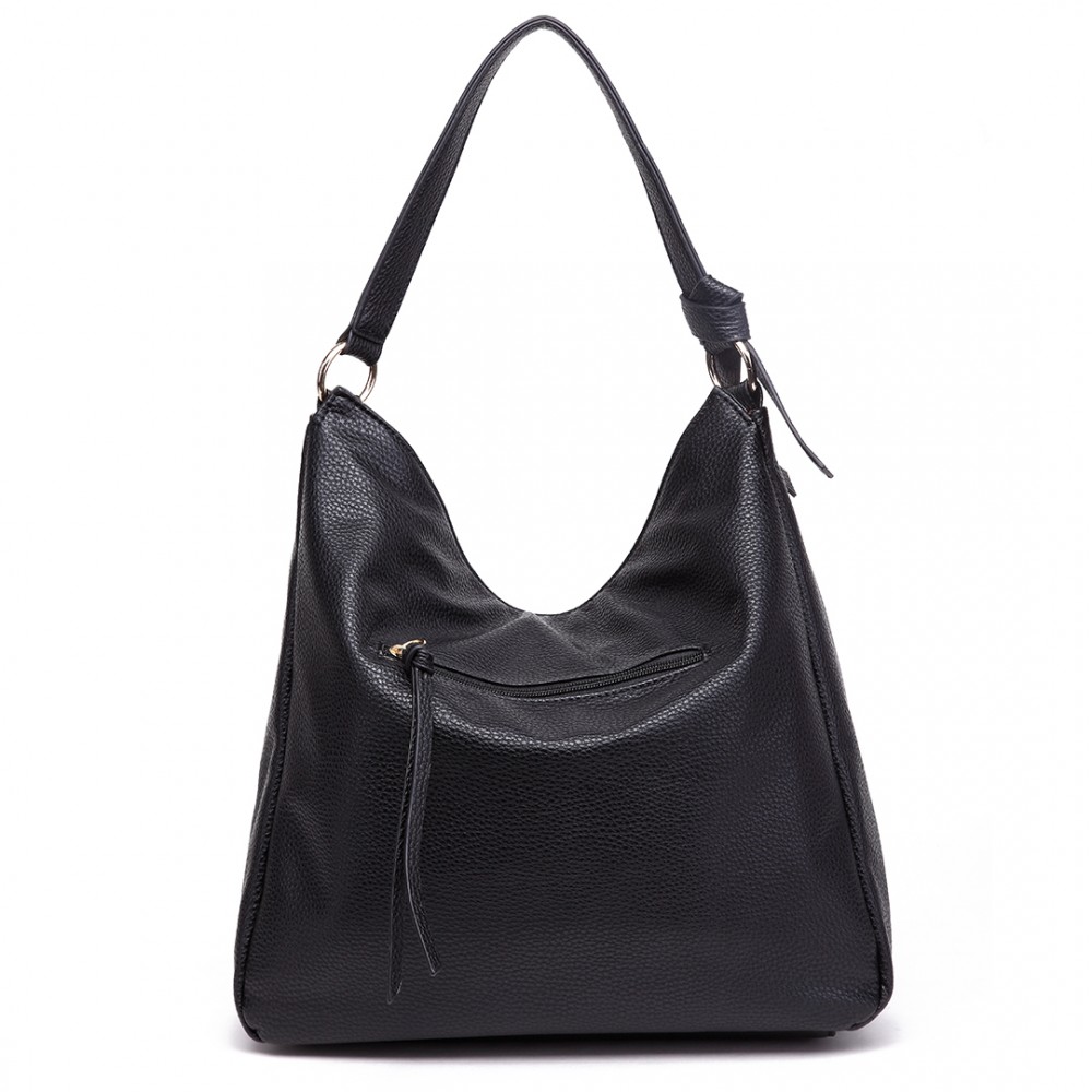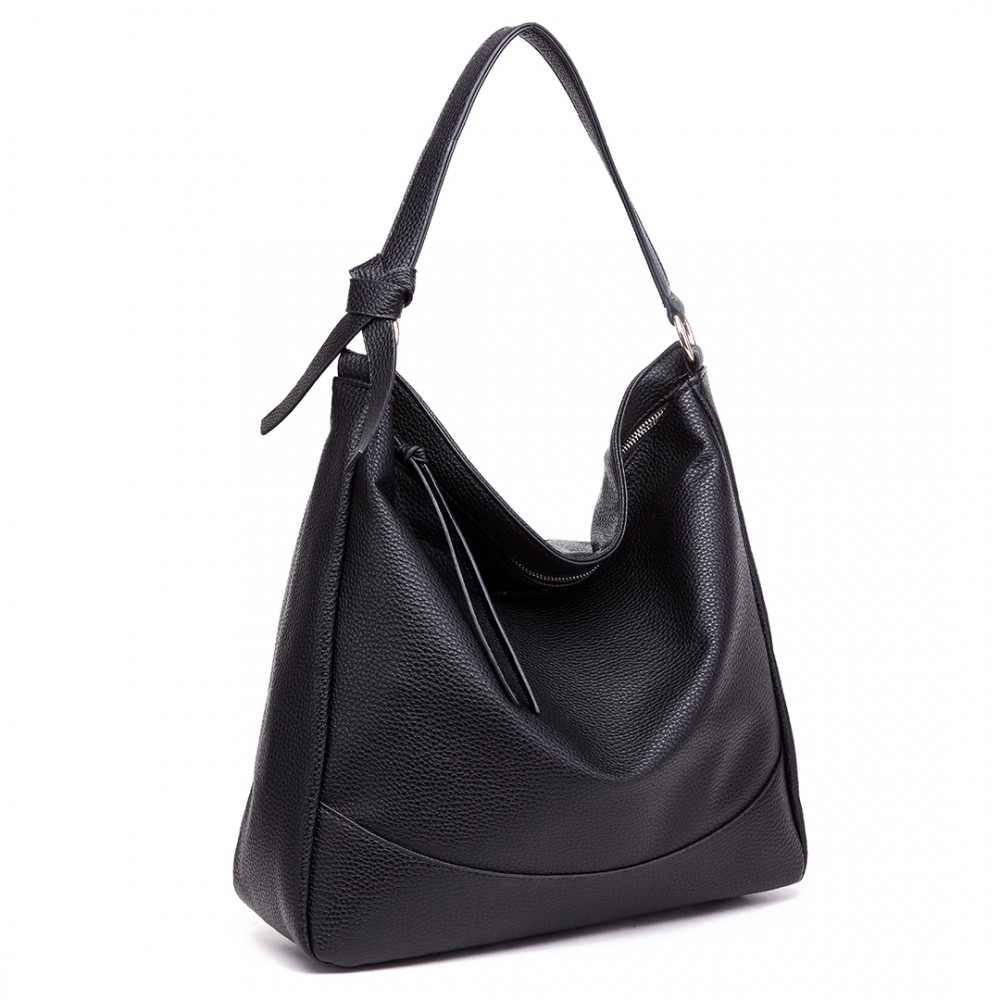 S1761 BK - Bolso de mano mediano tamaño Miss Lulu en piel Look Slouch Hobo en negro