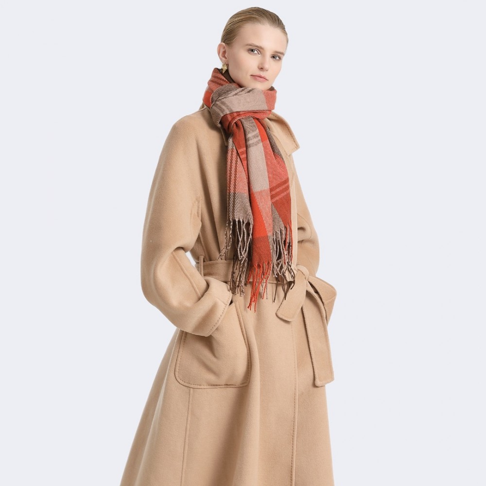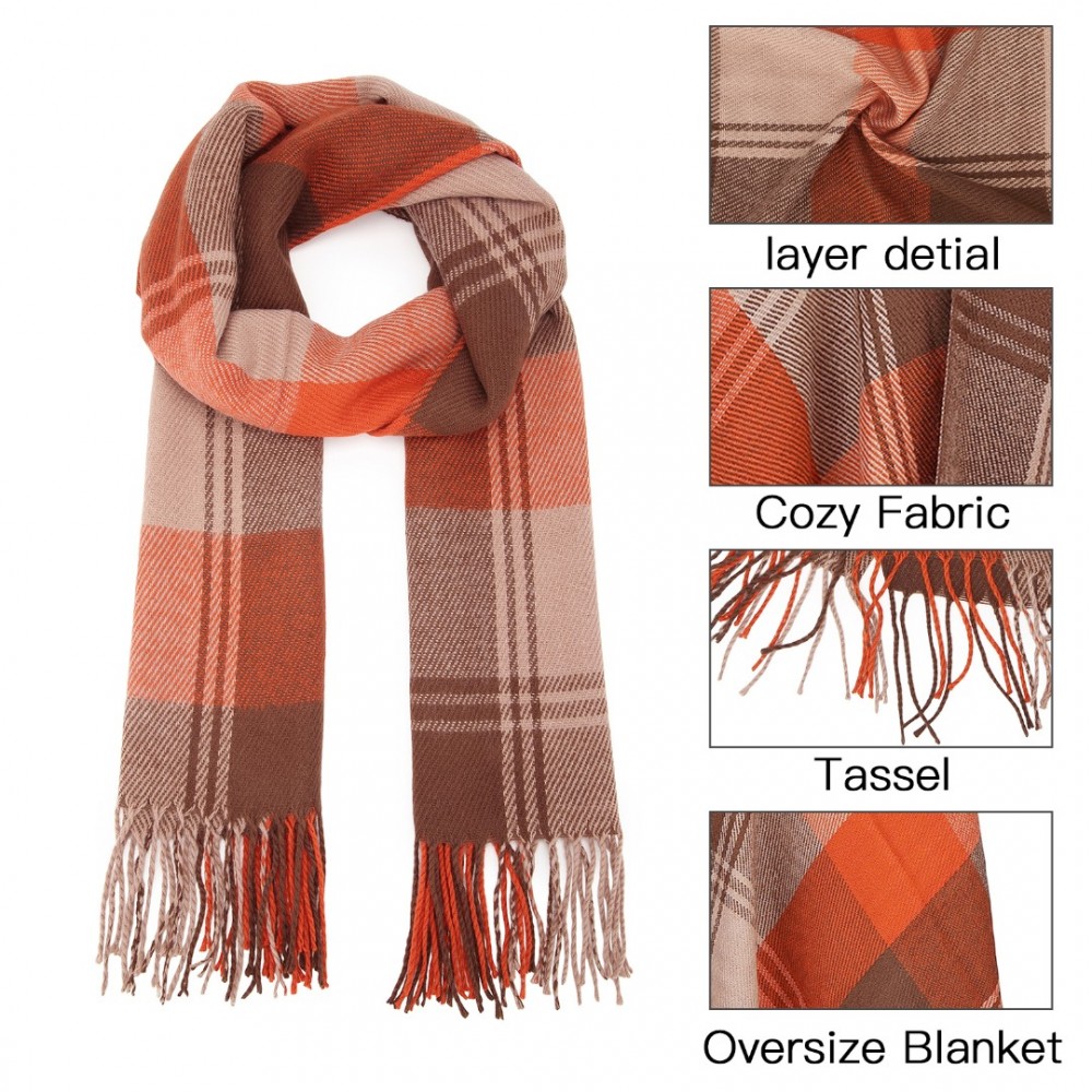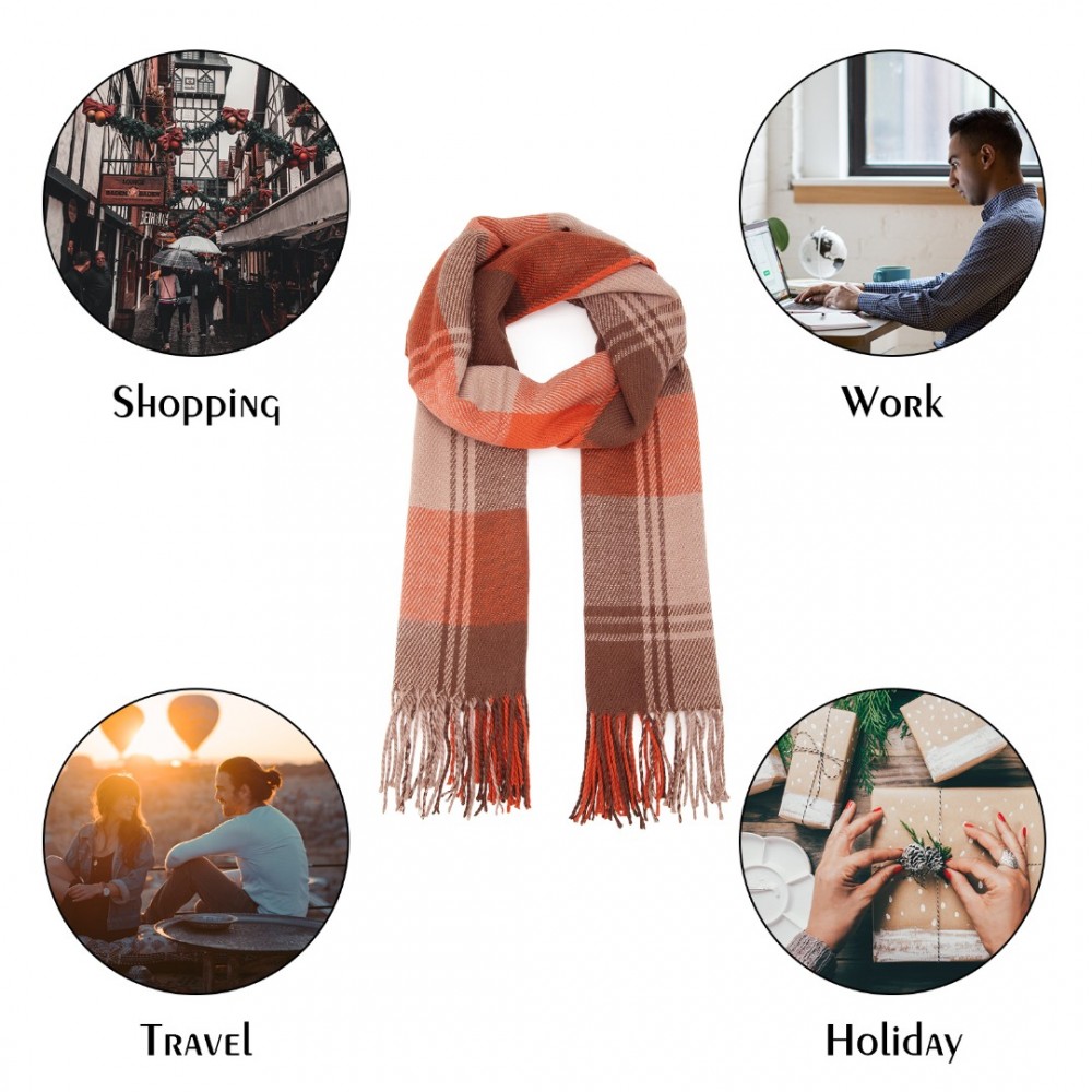 SFN4401 - Elegant Farbblock Halstuch mit Fransenverzierung - Vielseitig Überdimensioniertes Design - Orange