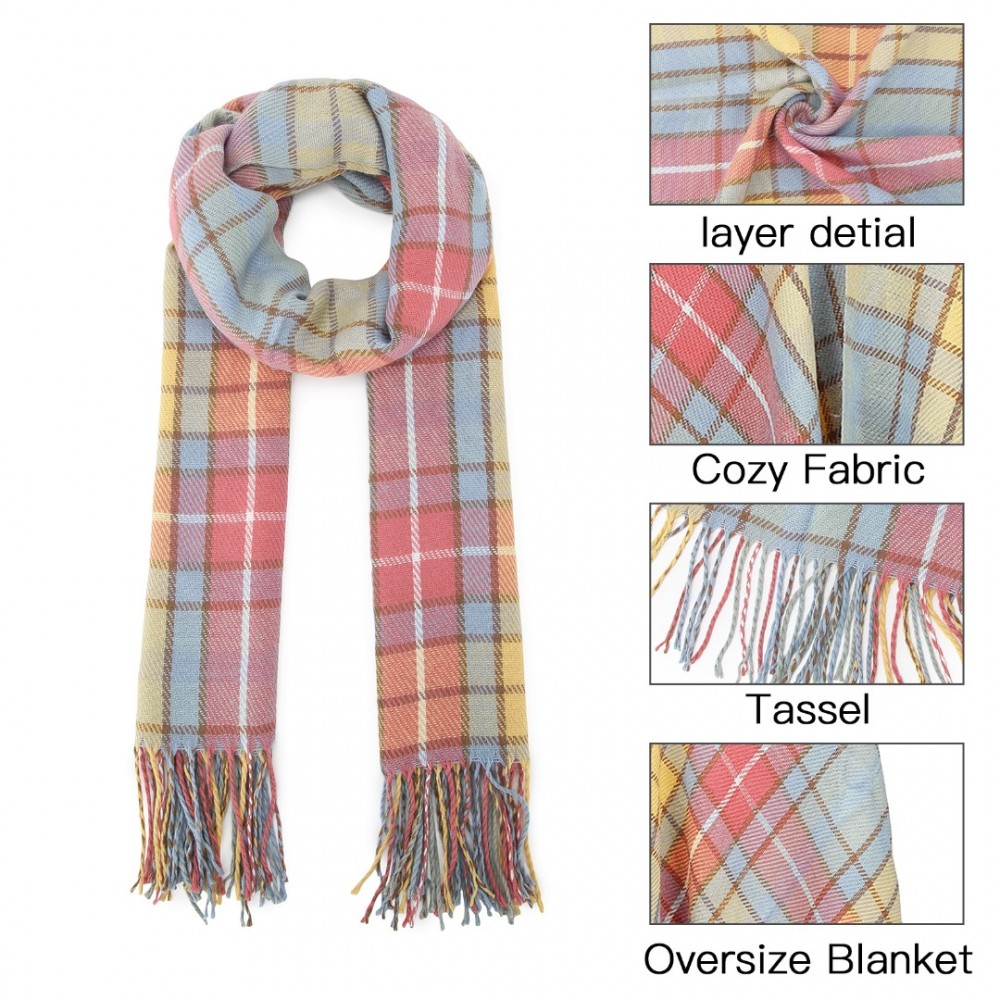 SFN4401 - Elegant Farbblock Halstuch mit Fransenverzierung - Vielseitig Überdimensioniertes Design - Regenbogen