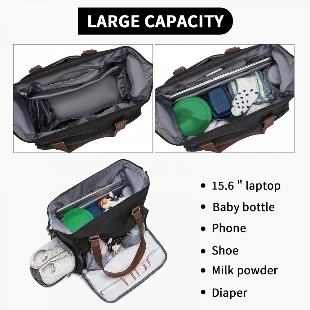 BCK2503 - Kono Große Wickeltasche mit Schuhefach, isolierte Taschen & wasserdichter Reißverschlusstasche - Schwarz