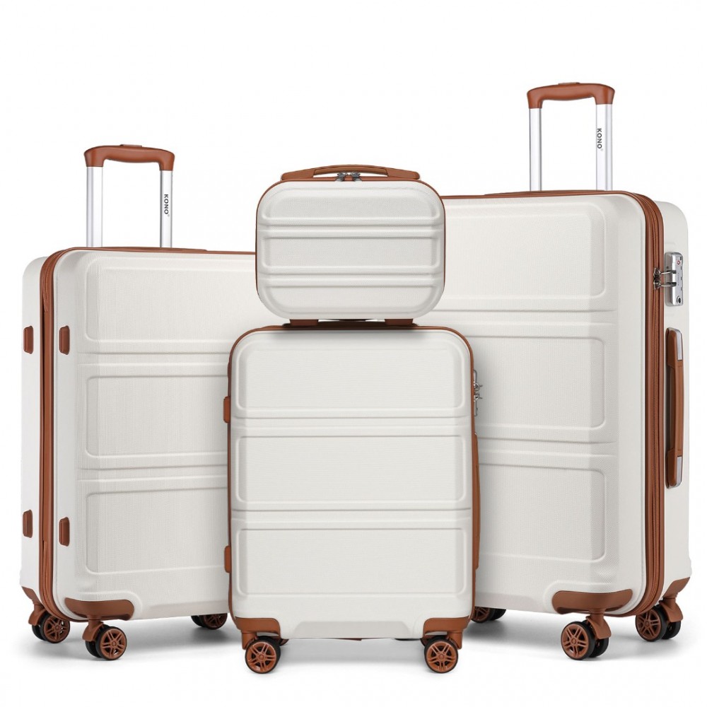 K1871-1L - Kono ABS Geformtes horizontales Design 4-teiliges Kofferset Mit Kosmetikkoffer - Creme