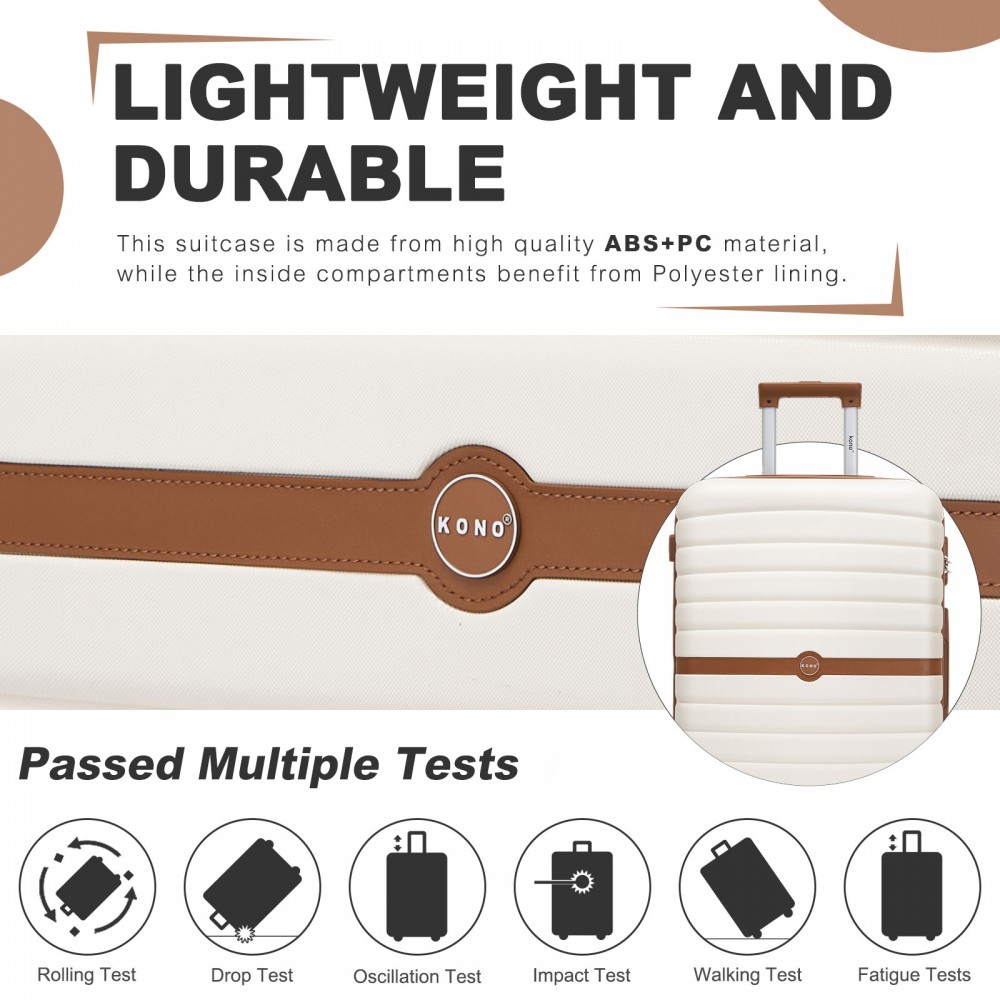 KSK2592 - Kono Großes checked luggage aus ABS+PC mit 28 Zoll, Streifendesign und Farbblockdetails für längere Reisen - Creme und braun