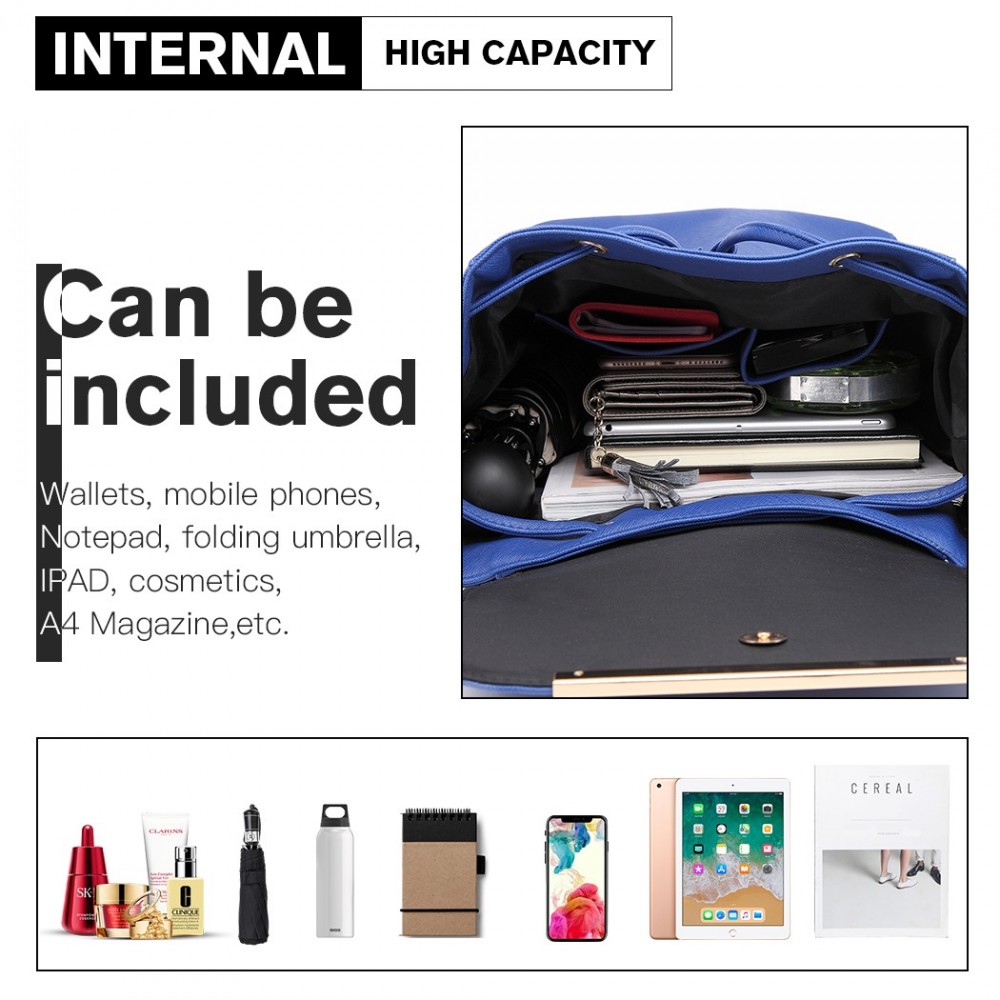 BPM2427 - Miss Lulu Stylischer Rucksack aus Kunstleder - Sicherer Tagesrucksack mit Magnetverschluss, Modische PU-Leder Reisetasche - Marineblau