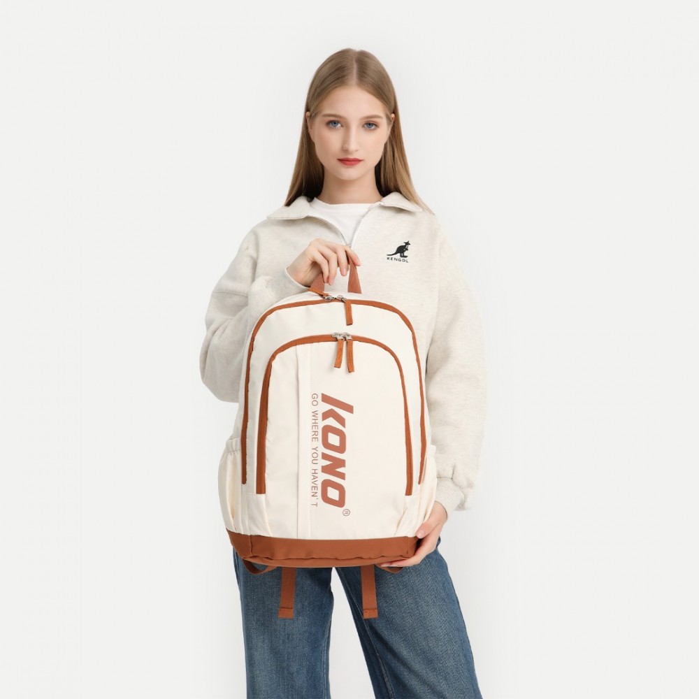 EB2325 - Kono Kontrastreiche Farben Wasserdicht Lässig Rucksack Mit Laptop-Fach - Beige