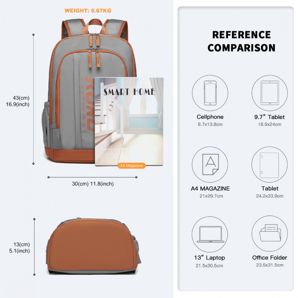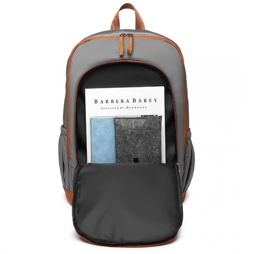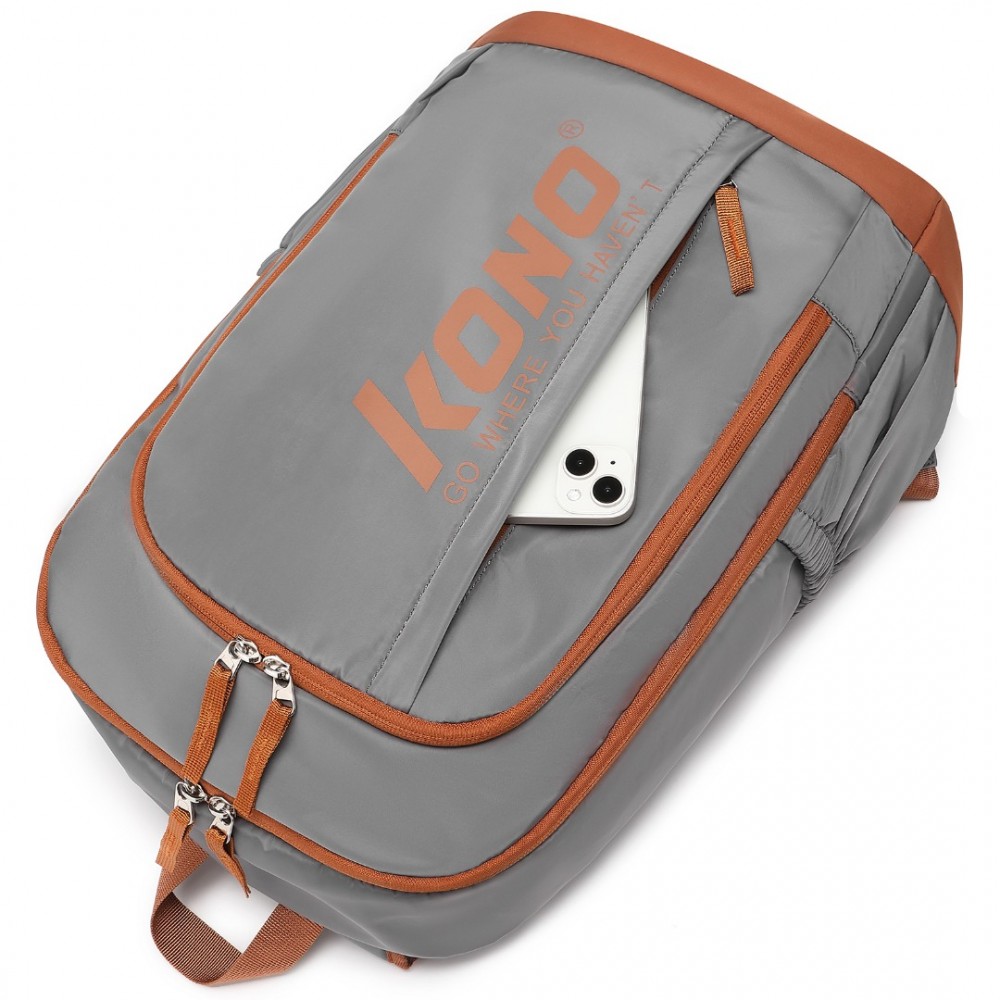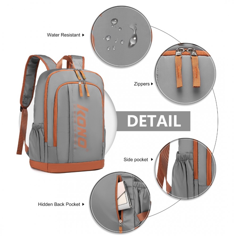 EB2325 - Kono Kontrastreiche Farben Wasserdicht Lässig Rucksack Mit Laptop-Fach - Grau