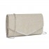 CLM2459 - Miss Lulu Damen-Glitzer-Enveloppe-Clutch mit V-Metallbesatz und abnehmbarer Kettenriemen - Silber