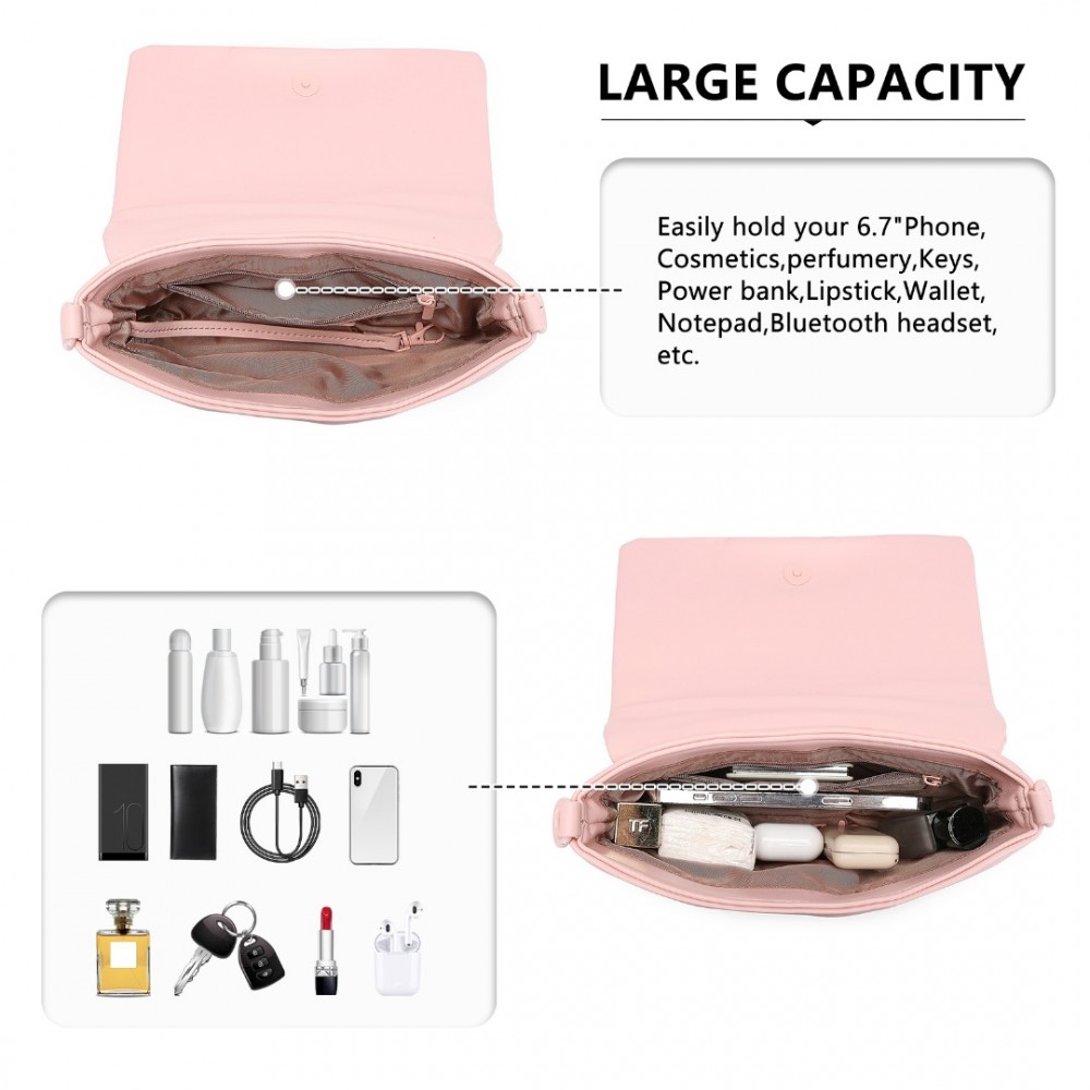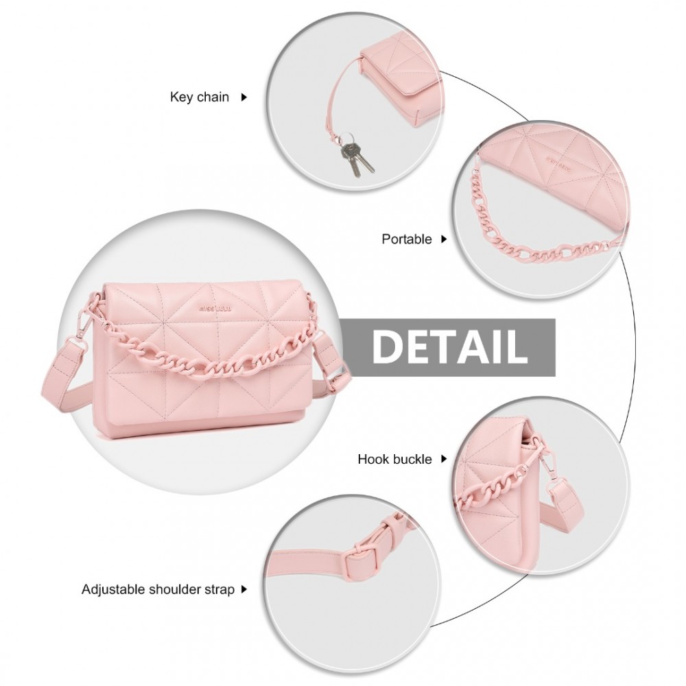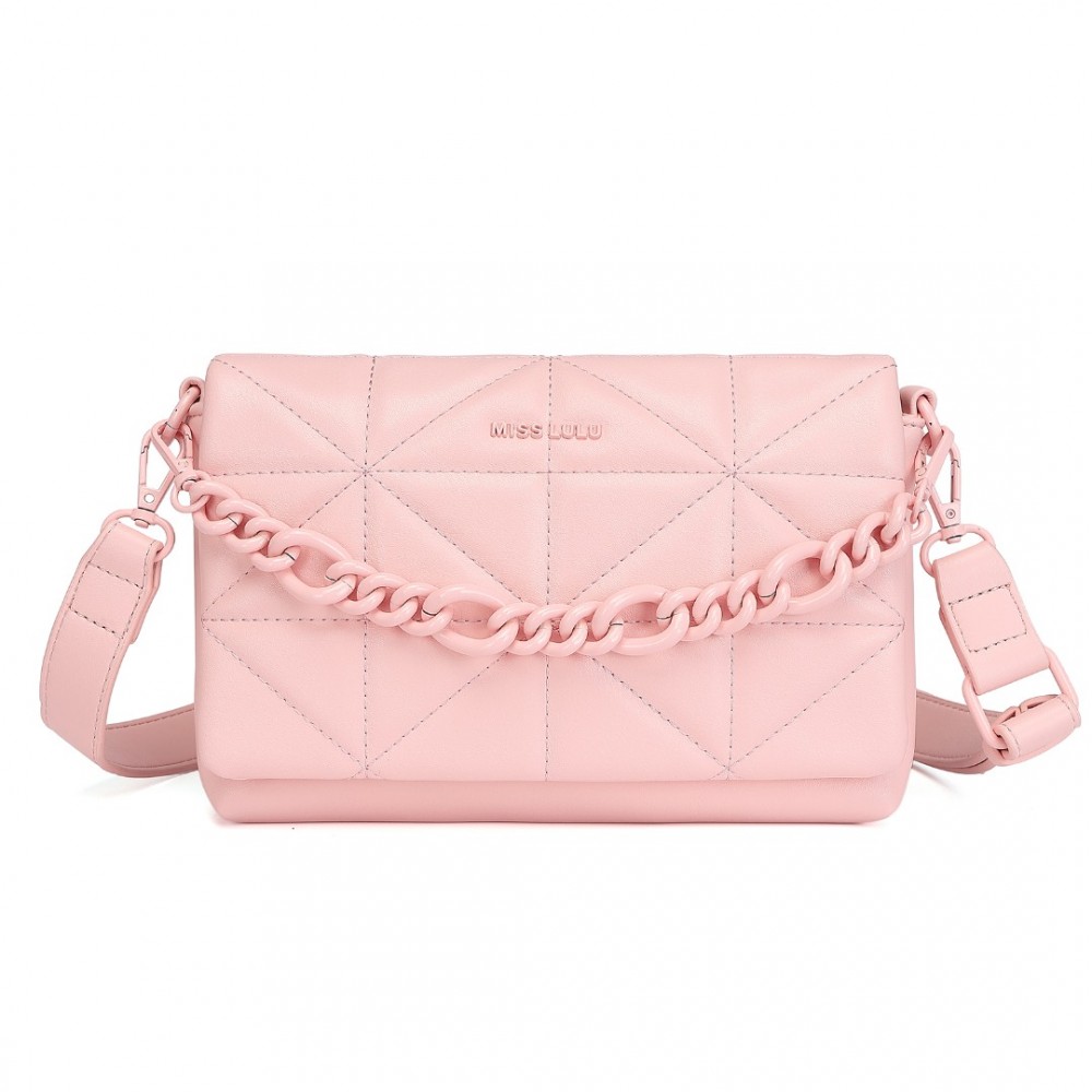 LG2318 - Miss Lulu Schicke gesteppte Umhängetasche Mit Kettenriemen - Rosa