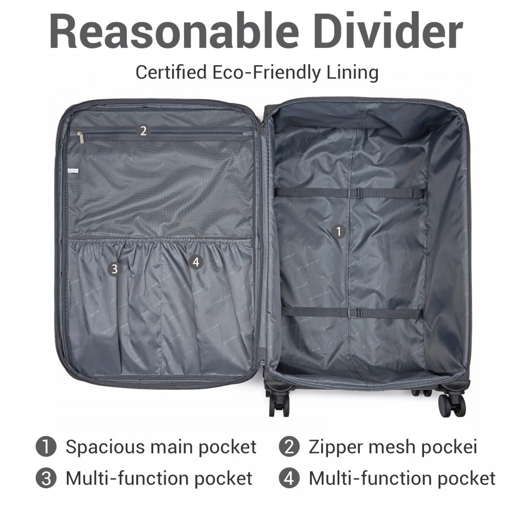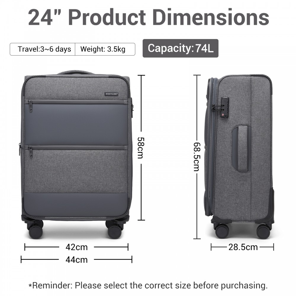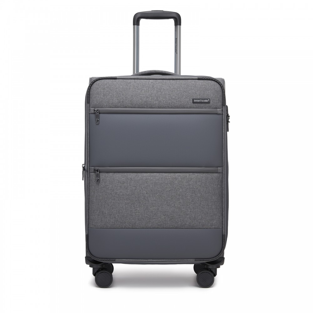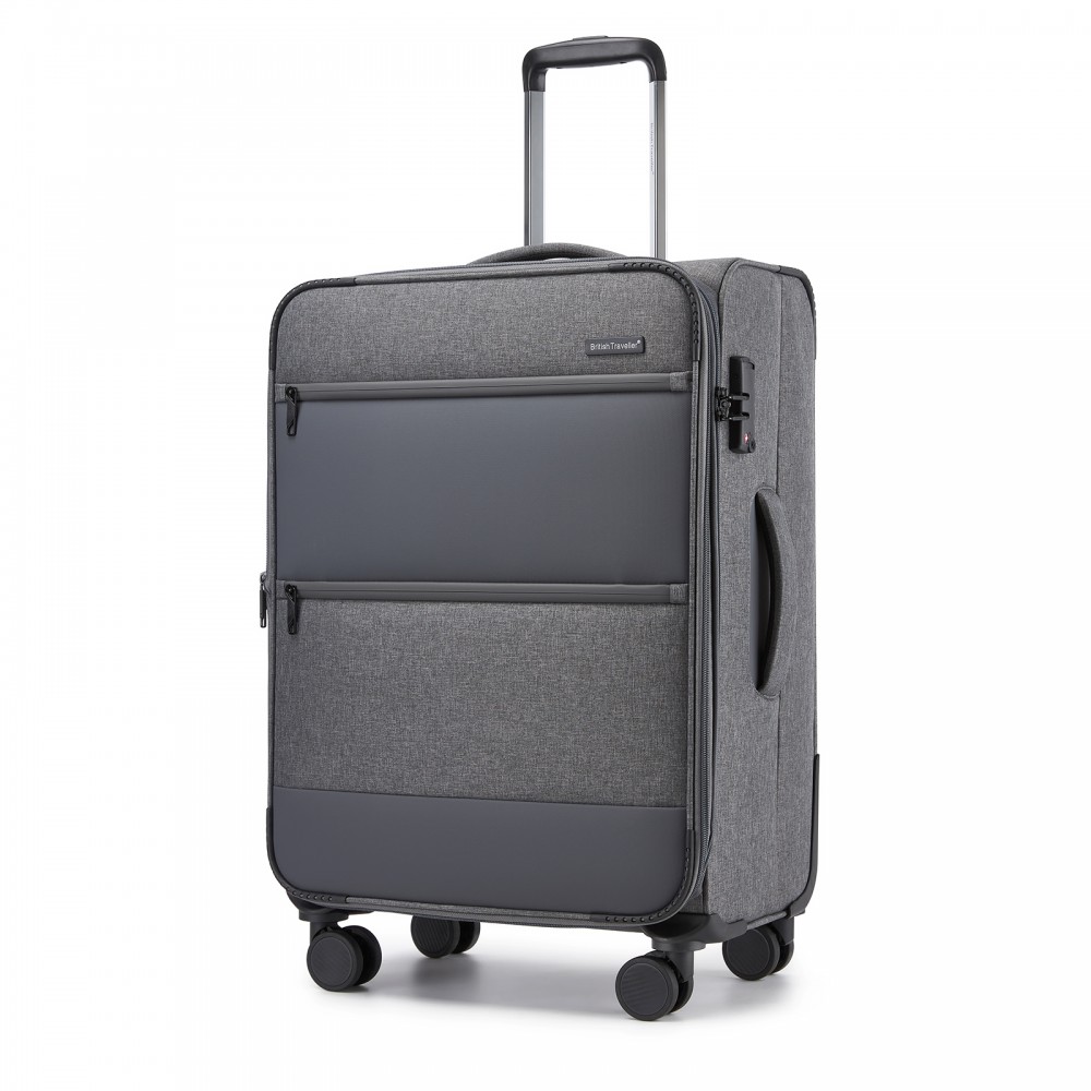 KSB2597 - British Traveller Eleganter, robuster 24-Zoll-Weichschalenkoffer mit leisen TPE-Rollen, TSA-Sicherheit und erweiterbarem Volumen - Grau