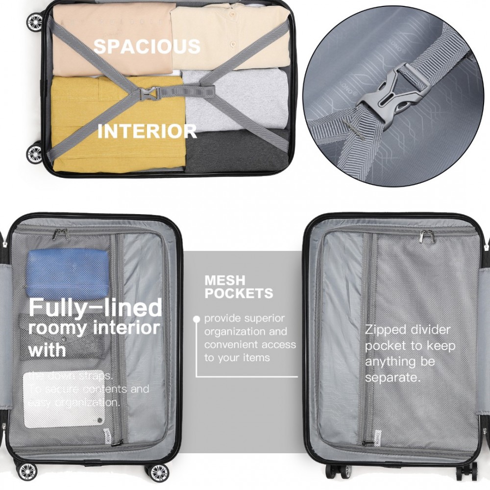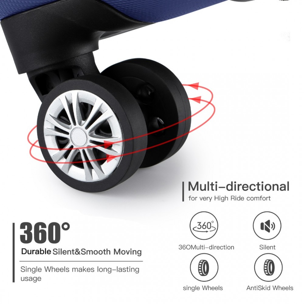 K1773-1L - Kono 19/24/28 Zoll 3 Stück Set Gestreift ABS+PC-Hartschalenkoffer mit 360-Grad-Spinner-Rädern - Marineblau