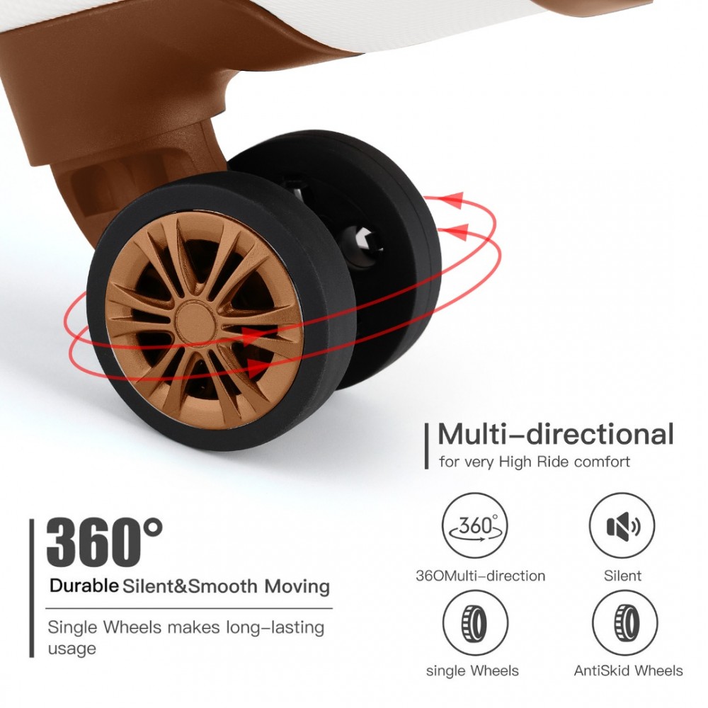 K1773-1L - Kono 19 Zoll Größe der Kabine ABS+PC Hartschale Reisegepäck mit Vertikalen Streifen - Ideal als Handgepäck - Creme