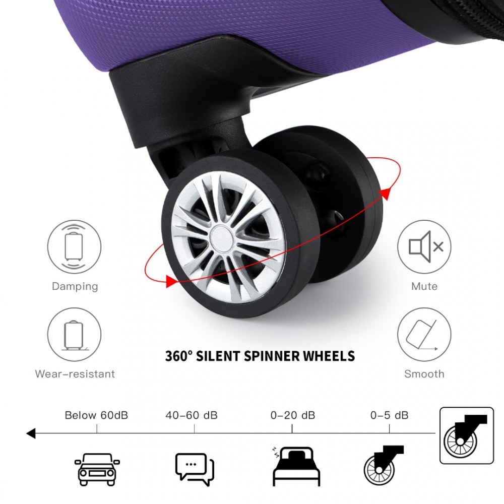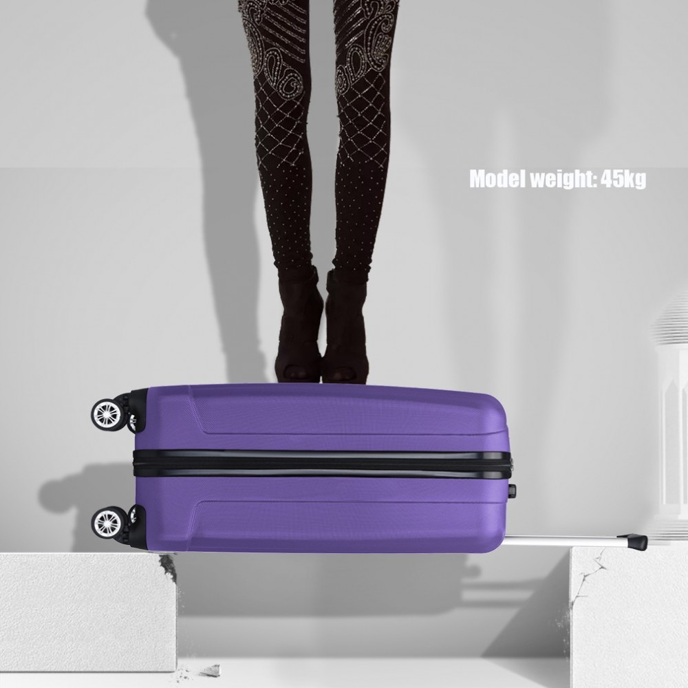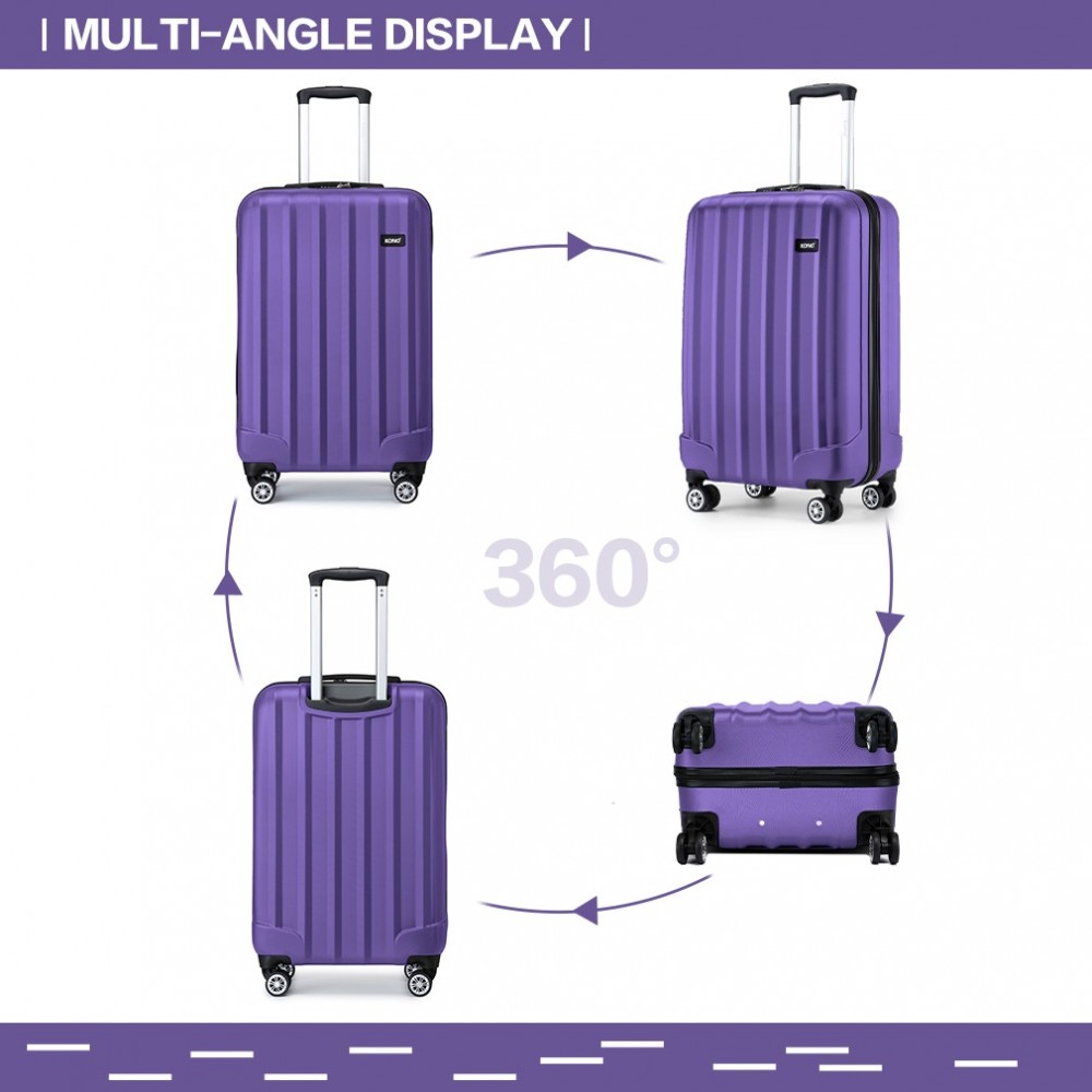 K1773-1L - Kono 19 Zoll Größe der Kabine ABS+PC Hartschale Reisegepäck mit Vertikalen Streifen - Ideal als Handgepäck - Lila