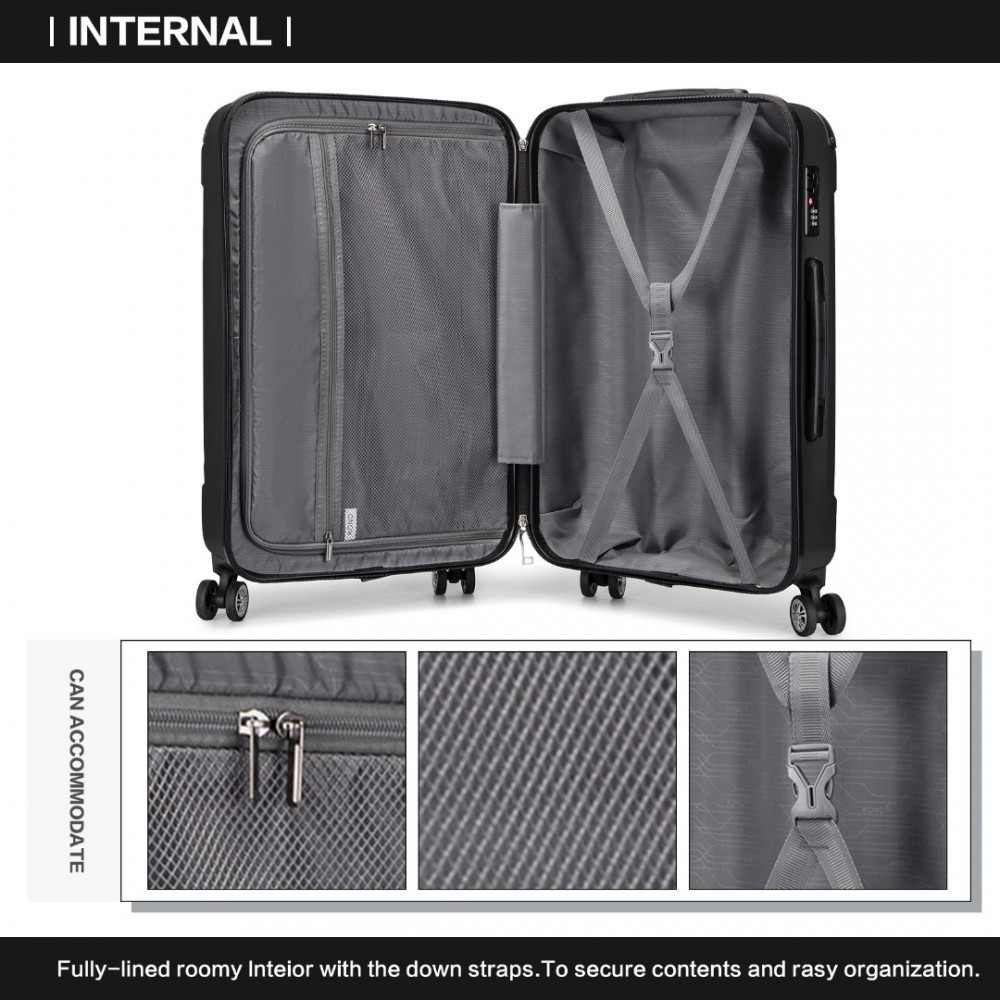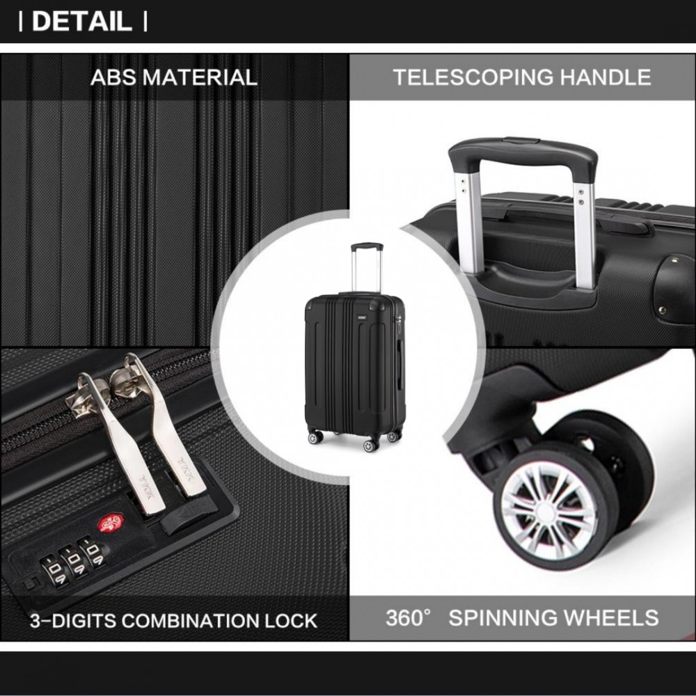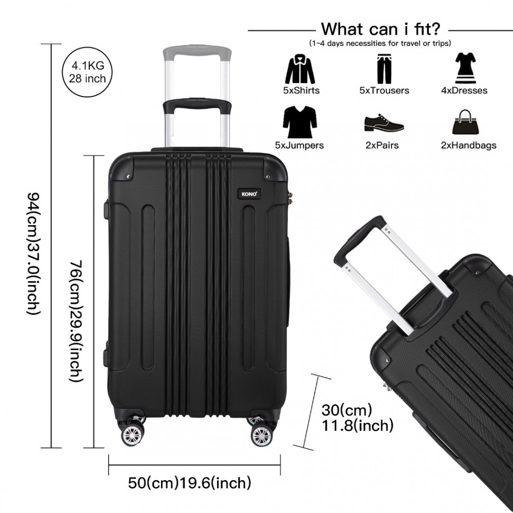 K1777-1L - Kono 19/24/28 Zoll 3er Set ABS Leichtes Gewicht Kompakt Hartschale Reisegepäck - Schwarz