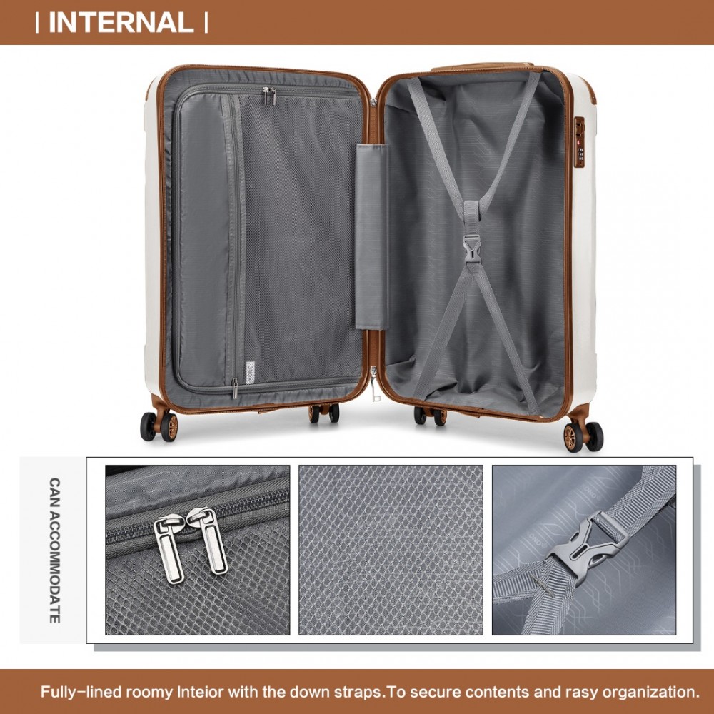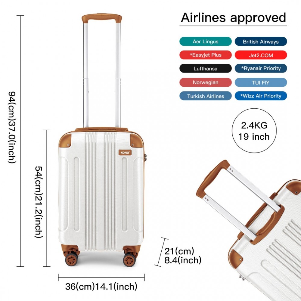 K1777-1L - Kono 19 Zoll ABS Leichtes Gewicht Kompakt Hartschale Kabinen-Koffer Reise-Handgepäck - Creme