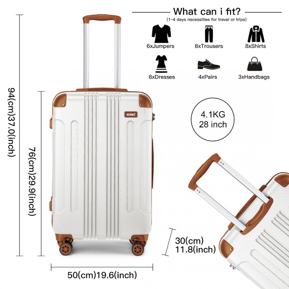 K1777-1L - Kono 28 Zoll ABS Leichtes Gewicht Kompakt Hartschale Reisegepäck Für ausgedehnte Reisen - Creme