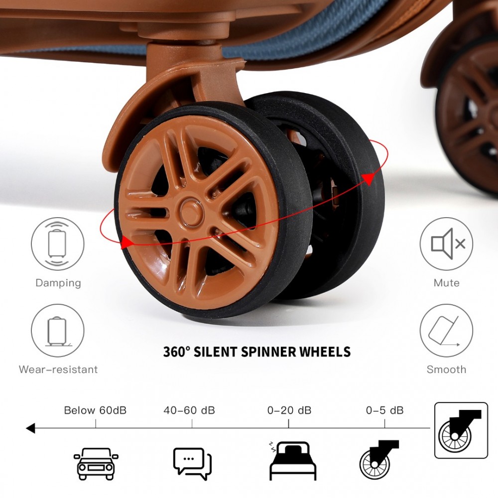 K1871-1L - Kono ABS Geformtes horizontales Design 4-teiliges Kofferset Mit Kosmetikkoffer - Graublau und Braun