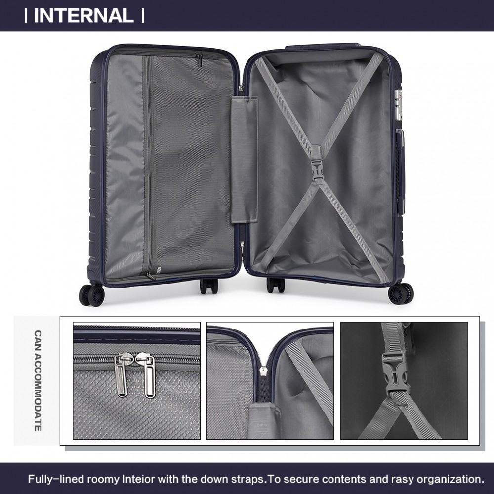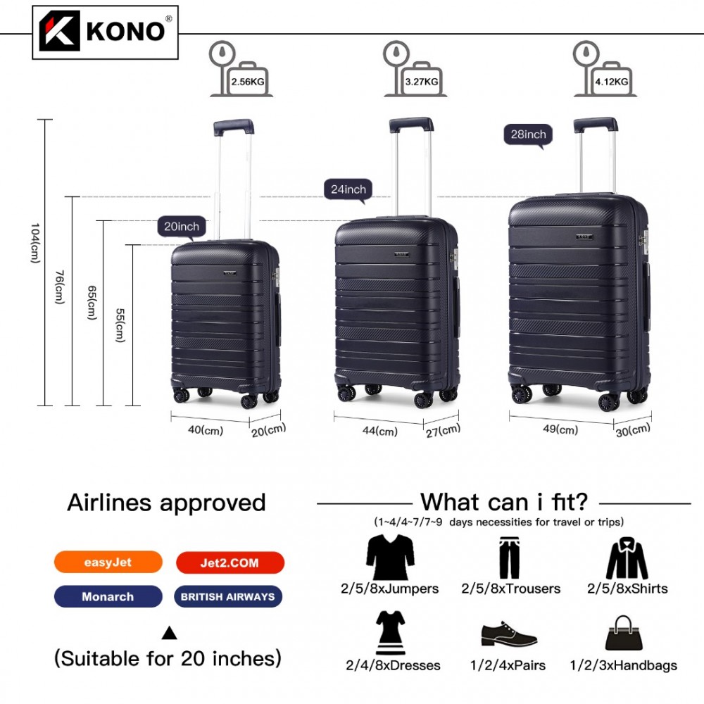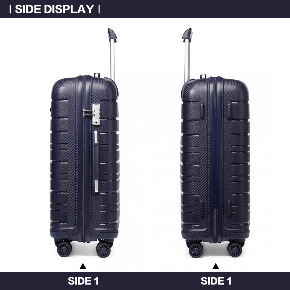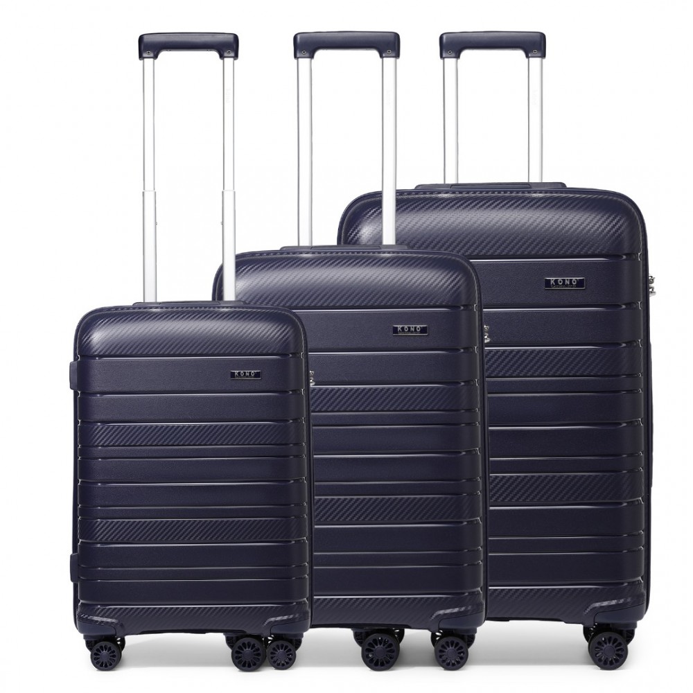 K2091L - Kono Multi Textur Hartschalen PP Koffer 3-teilig - Classic Collection - Marineblau