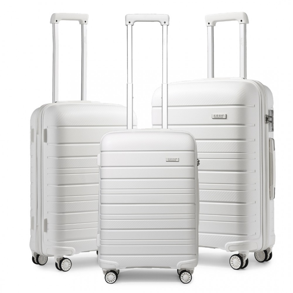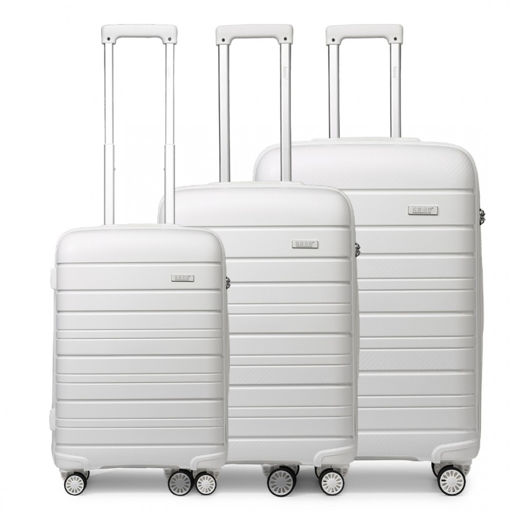 K2091L - Kono Multi Textur Hartschalen PP Koffer 3-teilig - Classic Collection - Weiß