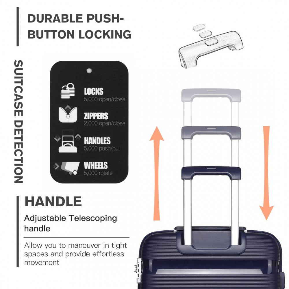 K2092L - Kono 20 Zoll Helles PP Hartschalen-Handgepäck in Kabinengröße - Marineblau