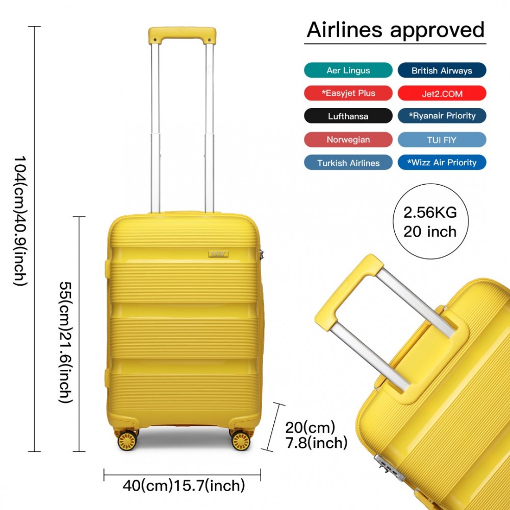 K2092L - Kono 20 Zoll Helles PP Hartschalen-Handgepäck in Kabinengröße - Gelb