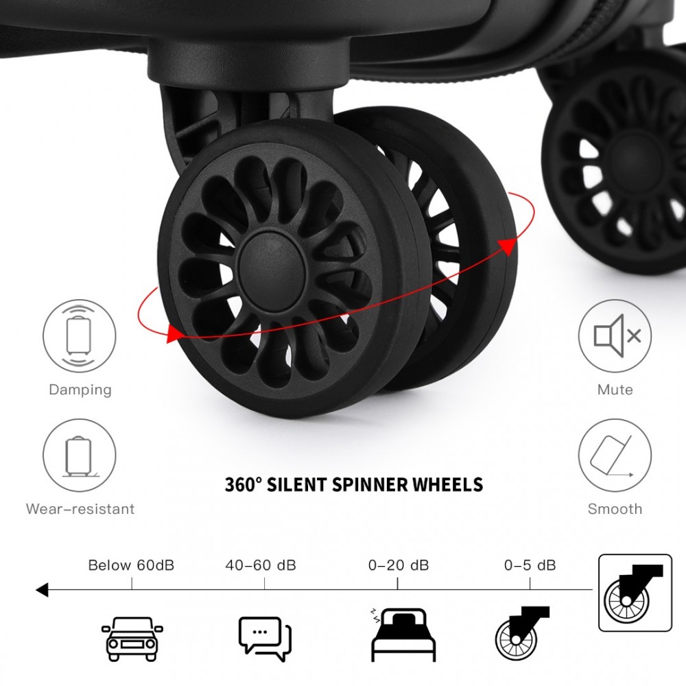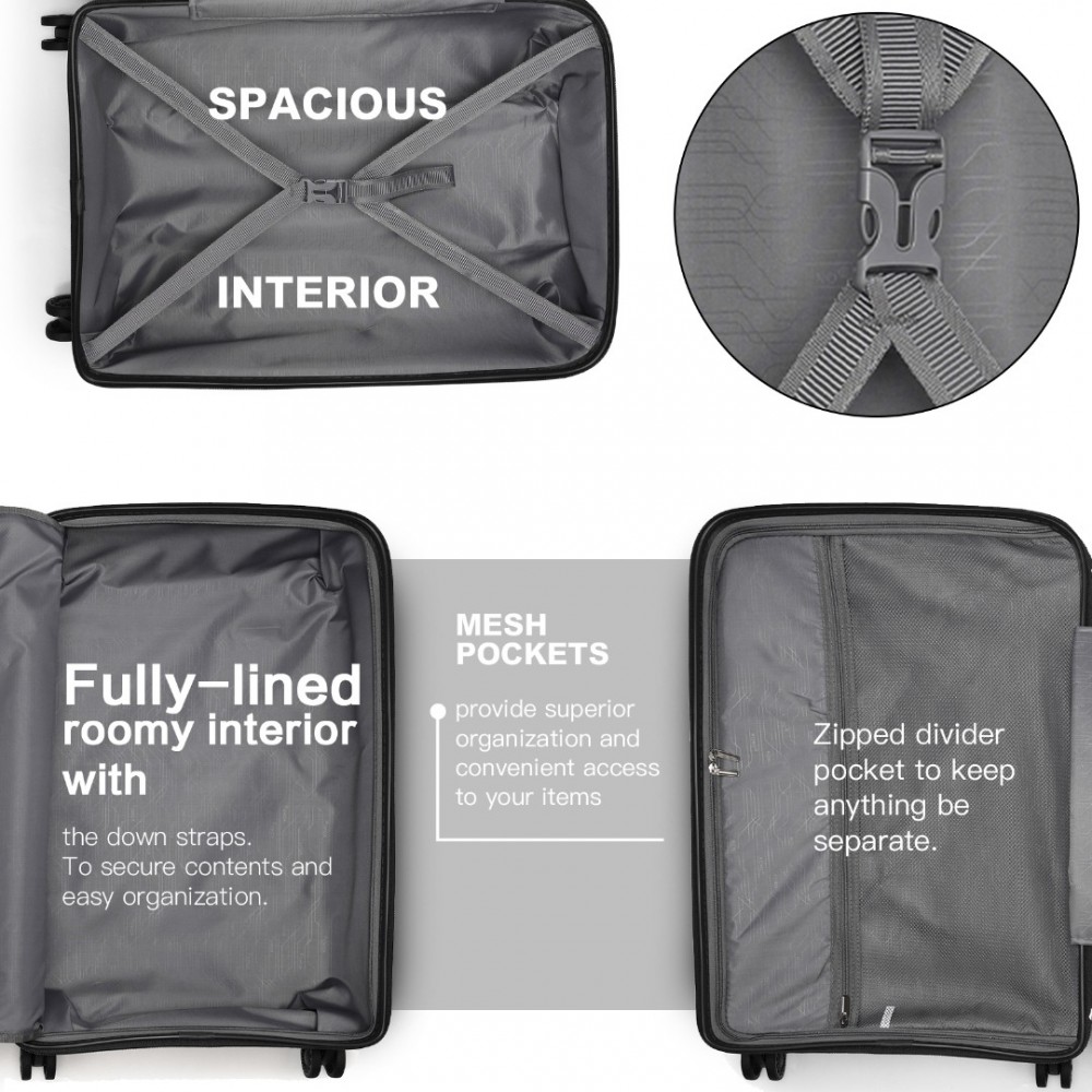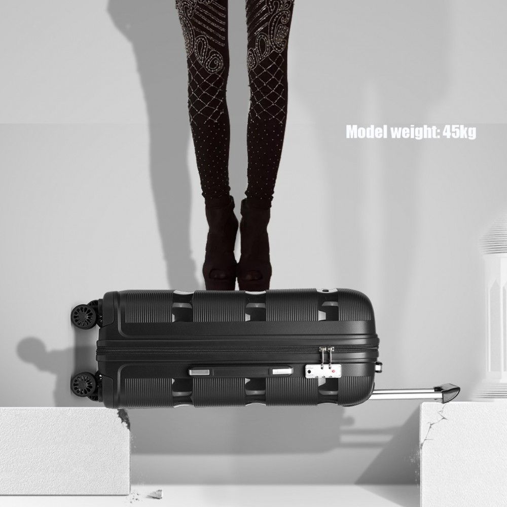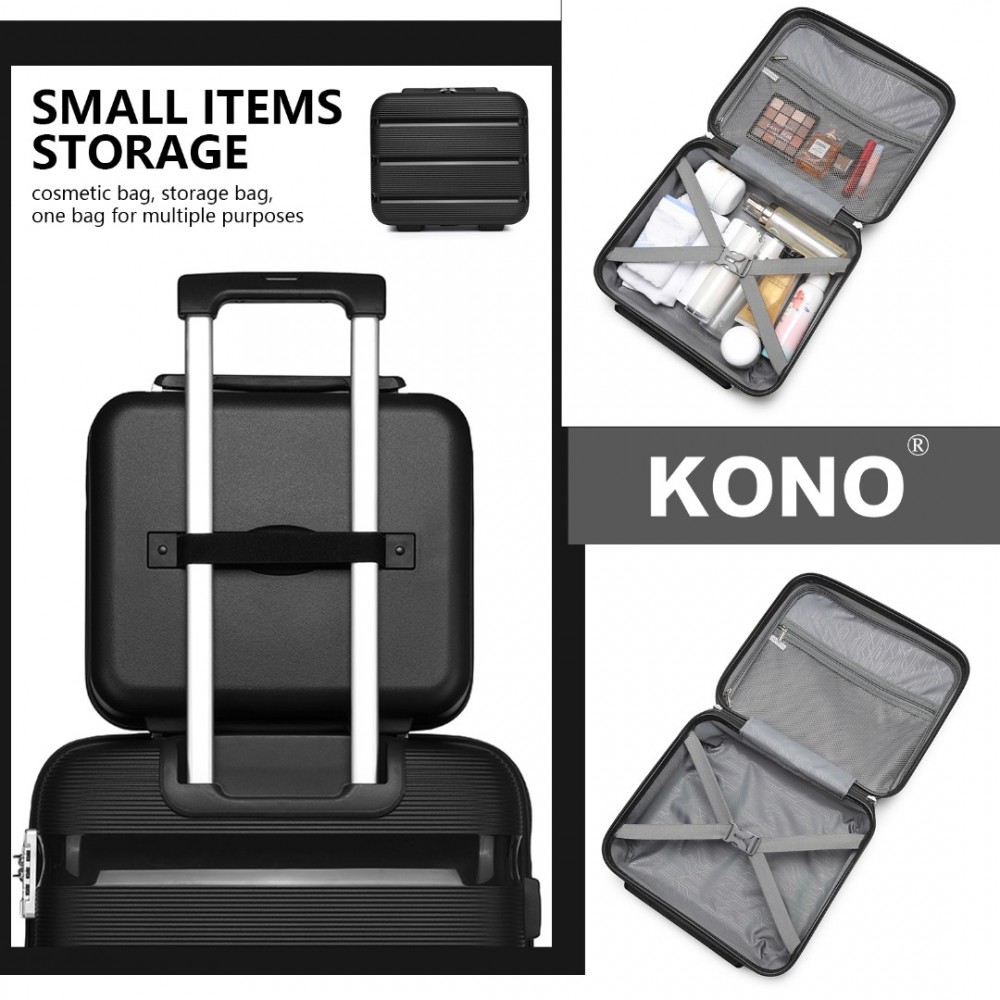 K2092L - Kono Helles Hartschale PP-Koffer Mit TSA-Schloss und Schminkkoffer 4er Set - Klassische Kollektion - Schwarz