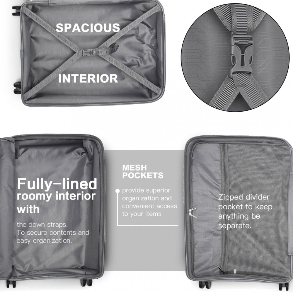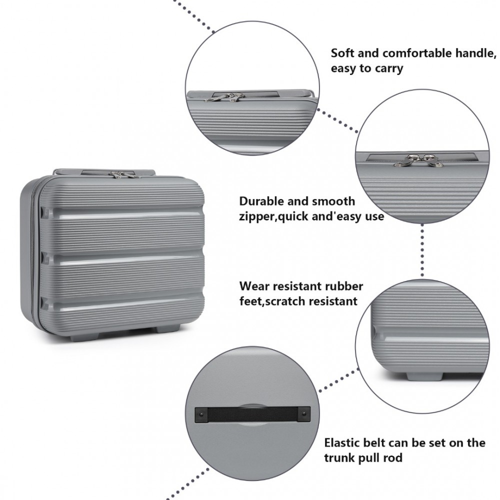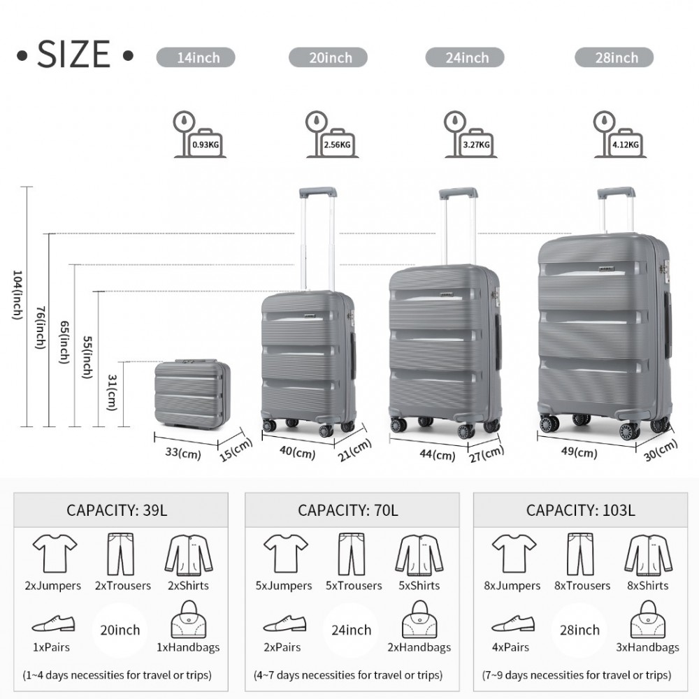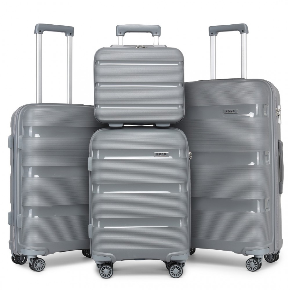 K2092L - Kono Helles Hartschale PP-Koffer Mit TSA-Schloss und Schminkkoffer 4er Set - Klassische Kollektion - Grau
