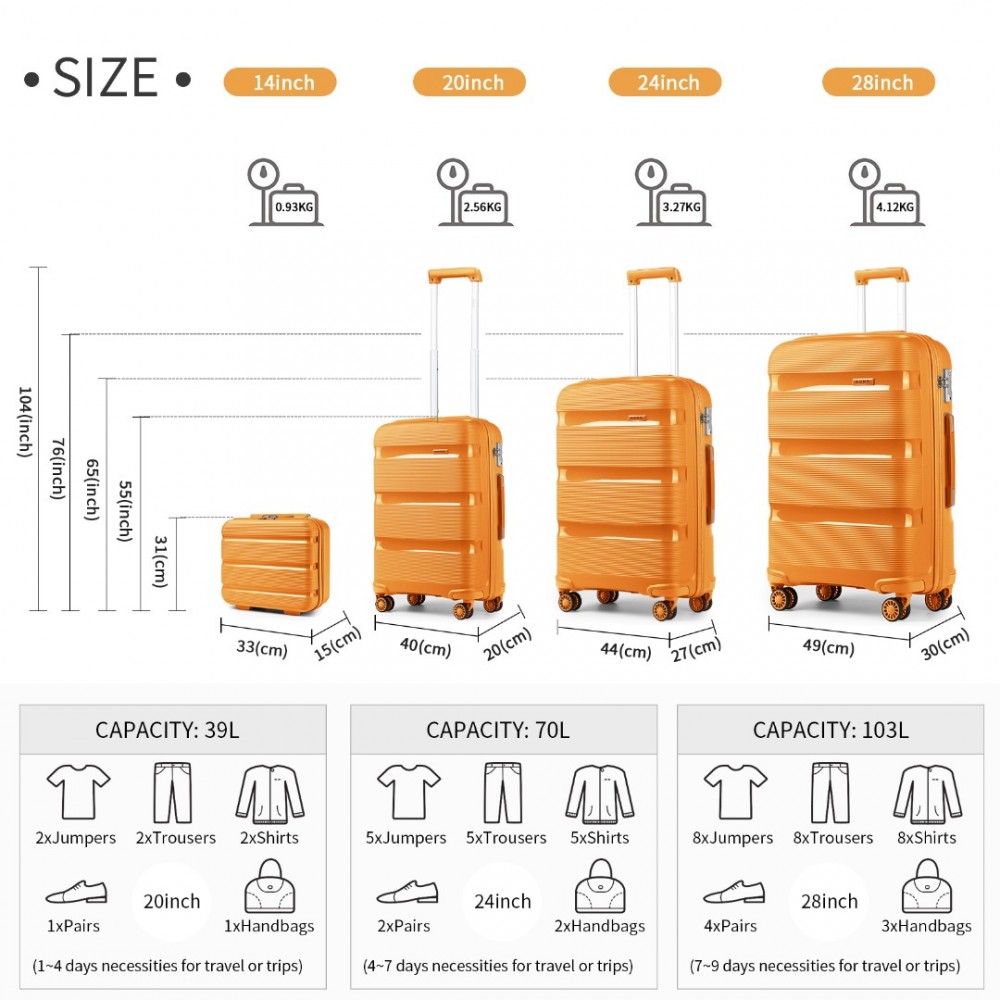 K2092L - Kono Helles Hartschale PP-Koffer Mit TSA-Schloss und Schminkkoffer 4er Set - Klassische Kollektion - Orange