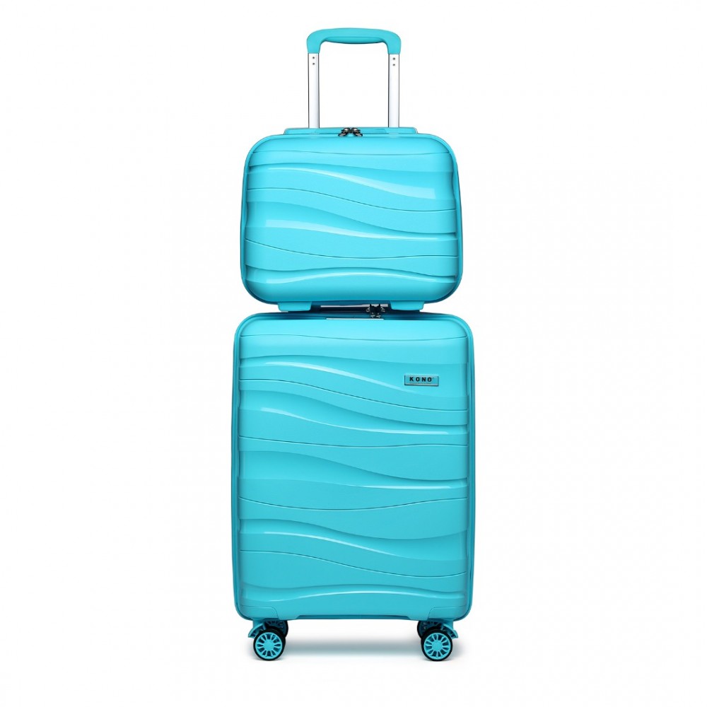 K2094L - Kono 14/20 Zoll leichtes Polypropylen-Hartschalen-2-teiliges Koffer-Set mit TSA-Schloss und Kosmetikkoffer - Blau