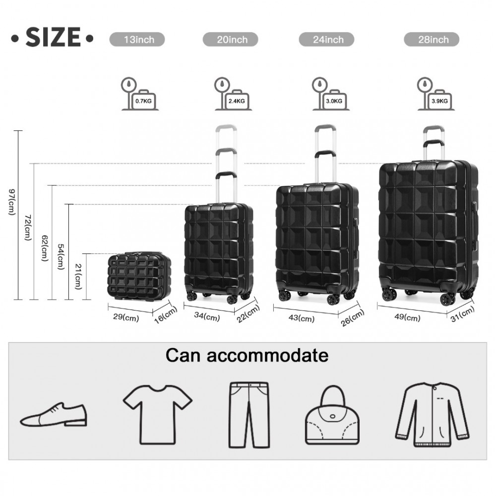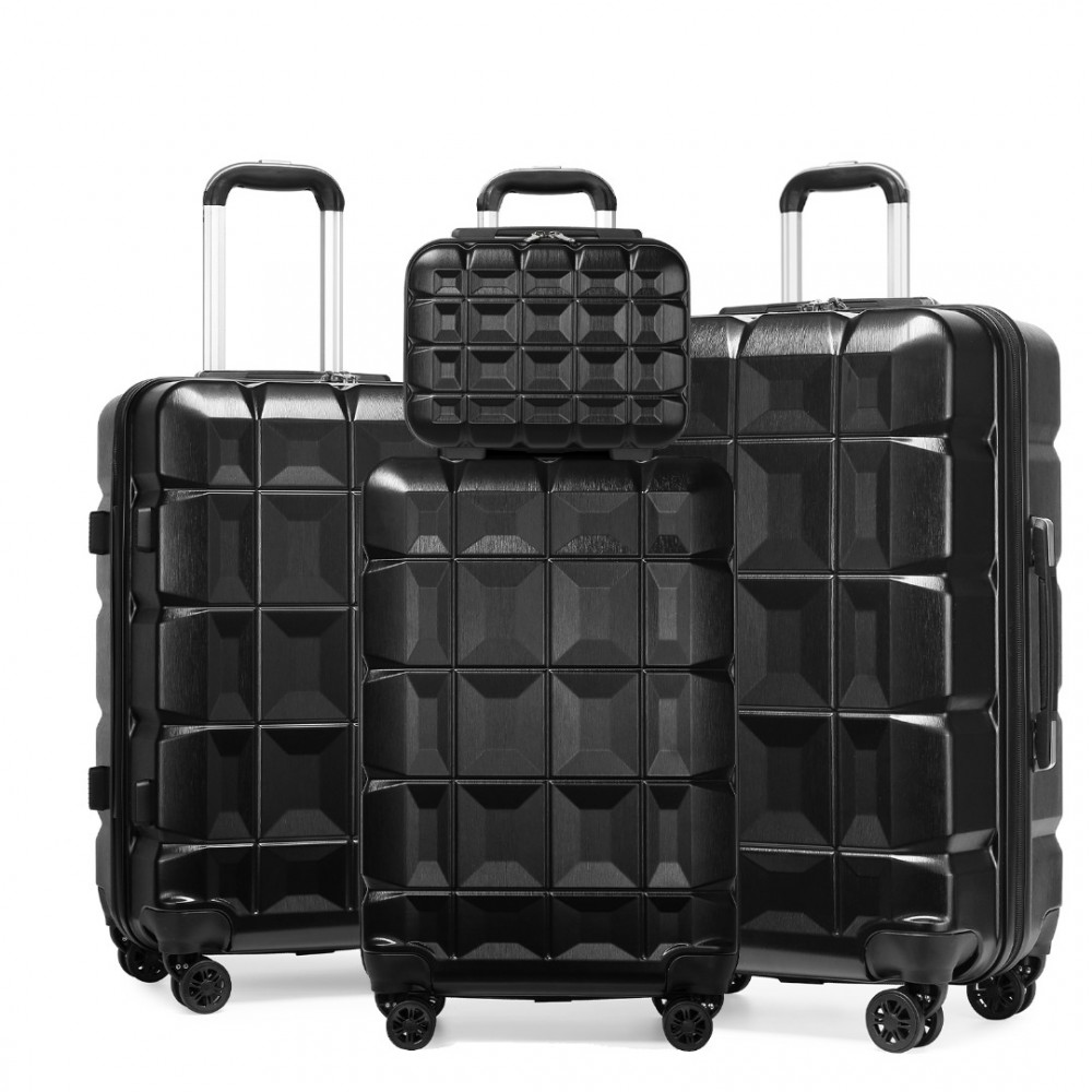 K2292L - Kono Leichtgewicht Hartschalen-ABS-Koffer Mit TSA-Schloss und Schminkkoffer 4teiliges Set - Schwarz