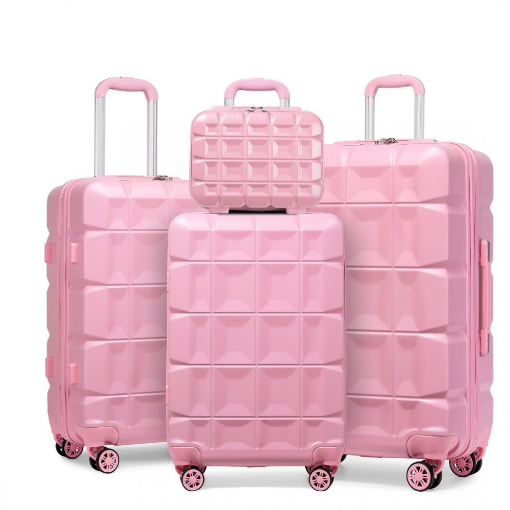 K2292L - Kono Leichtgewicht Hartschalen-ABS-Koffer Mit TSA-Schloss und Schminkkoffer 4teiliges Set - Rosa