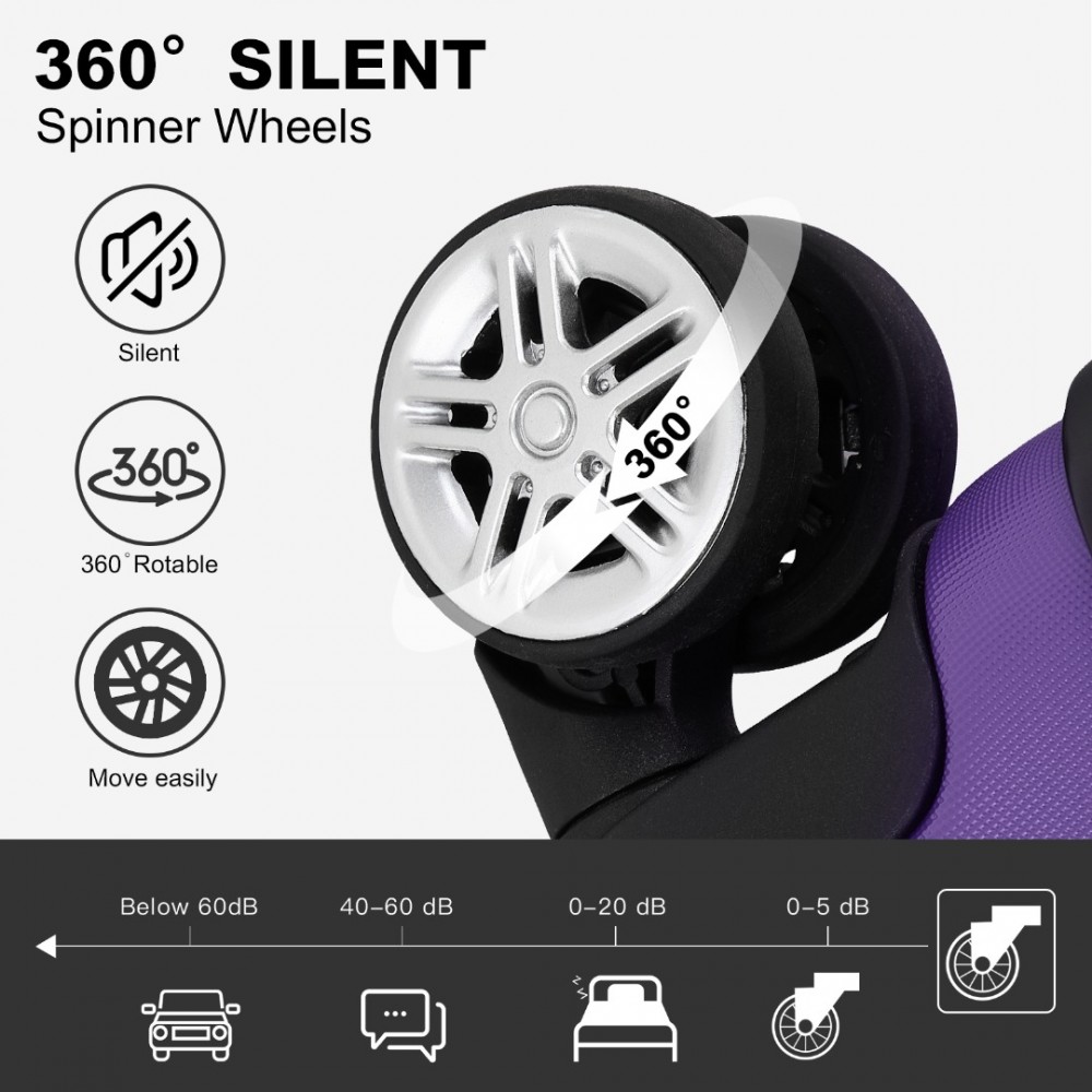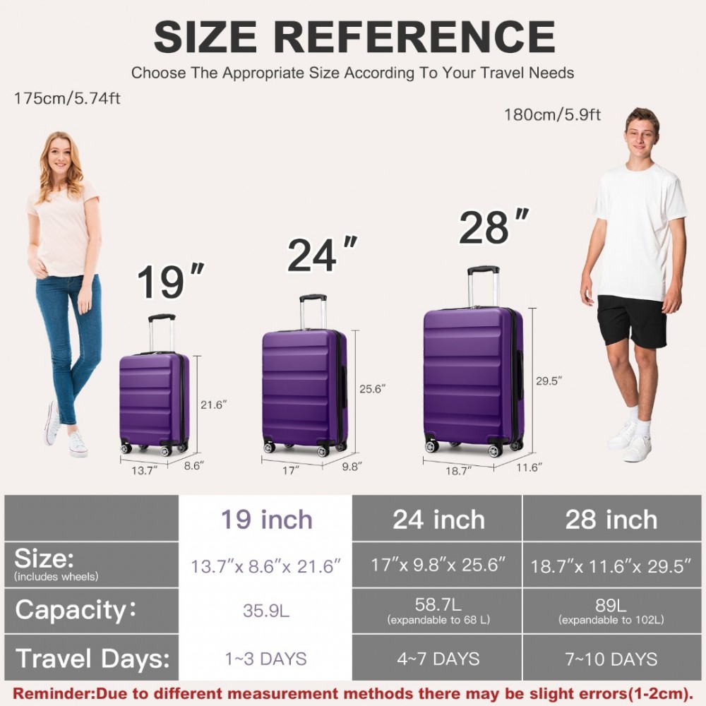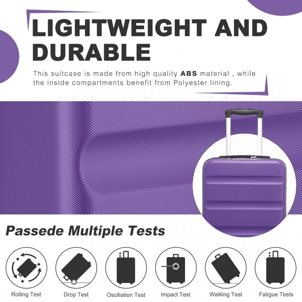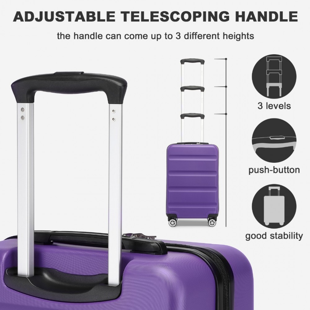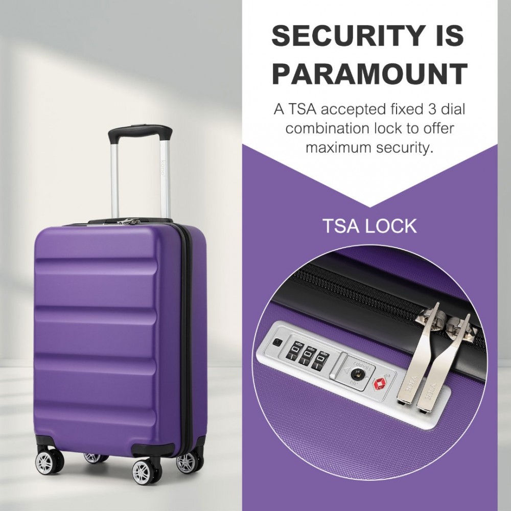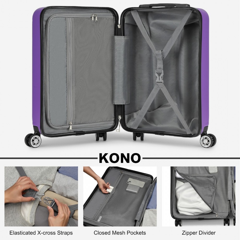 KSK2482 - Kono Stylische horizontale gravierte Hartschalen-Kabinentasche aus ABS+PC mit TSA-Schloss, 19 Zoll - Lila