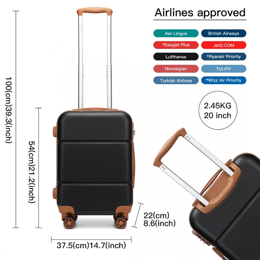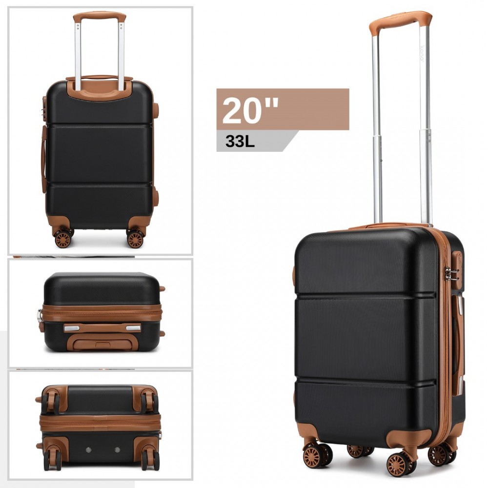 KSK2485 - Kono 20 Zoll Hochwertig ABS Kabinen-Tragekoffer mit sicherem Kombinationsschloss für müheloses Reisen - Schwarz und Braun