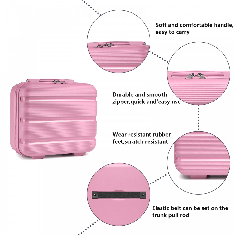 KSK2492 - Kono 4-teiliges PP-Hartschalegepäckset - Durable Reisekoffer mit TSA-Schloss, 360°-Drehrollen und Toilettentasche - Rosa
