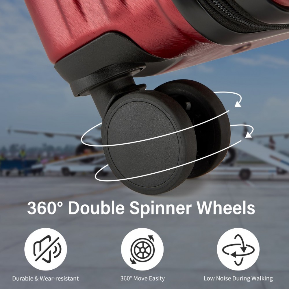 KSK2493 - Kono Haltbarer 24-Zoll-Hartschalen-Koffer aus ABS+PC mit TSA-Schloss, leichtgewichtiges Reisegepäck mit 360°-Dreirädern - Burgund