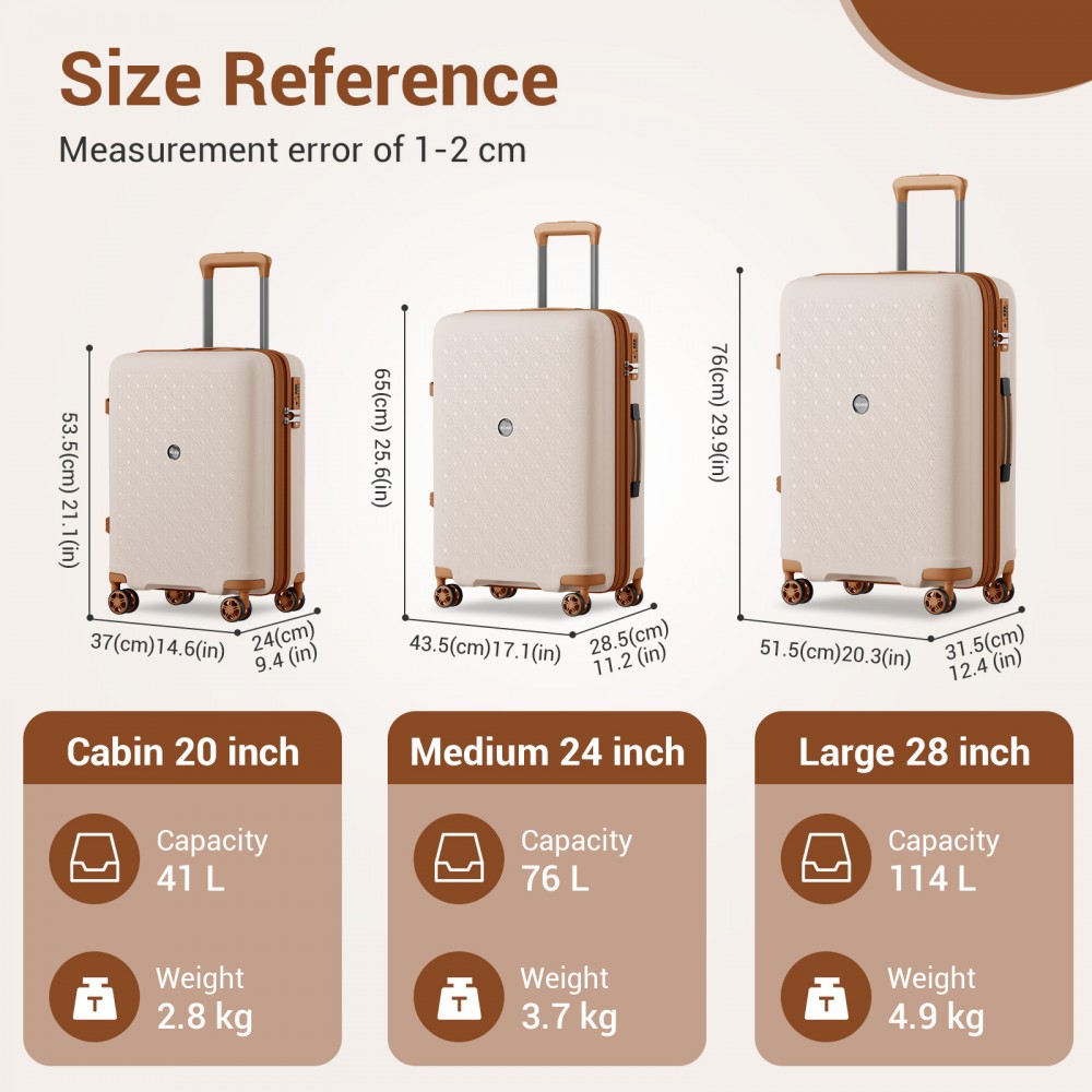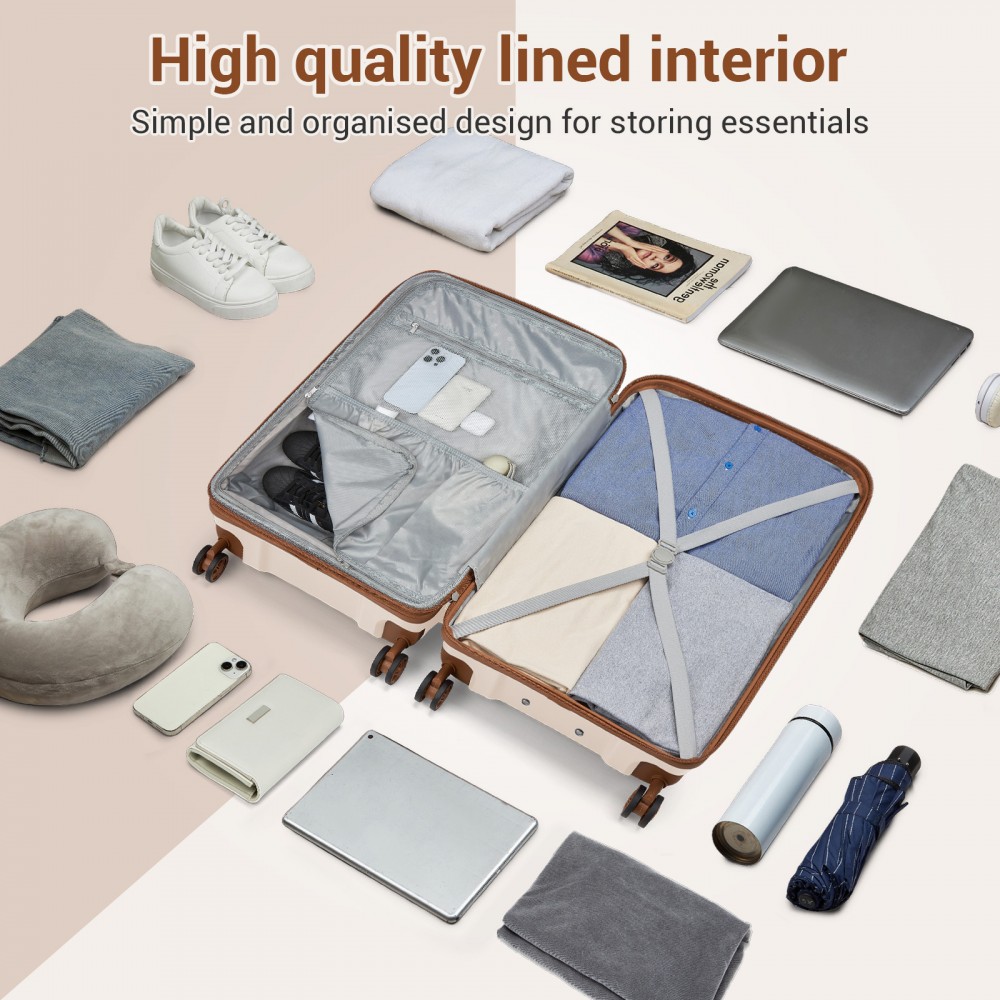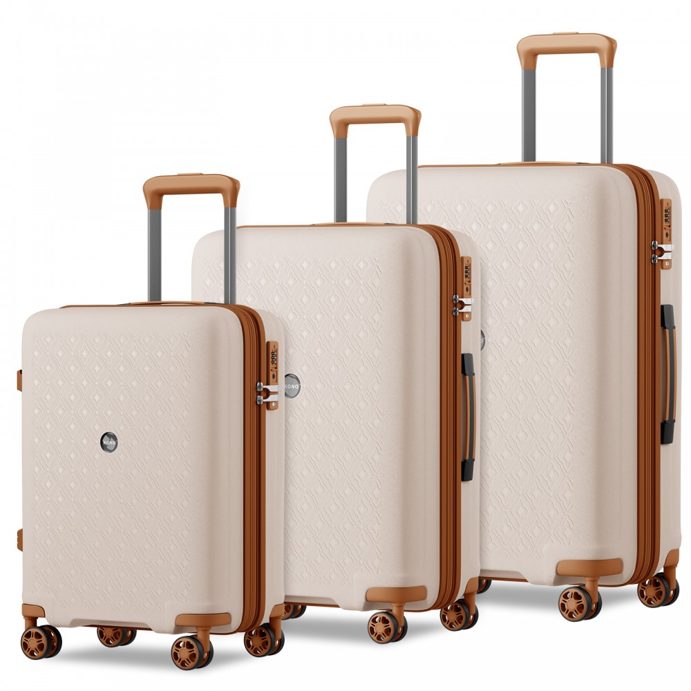 KSK2594 - Kono PP 20/24/28-Zoll-Hartschale-ausziehbares Gepäck – Leichter Koffer mit TSA-Schloss & integriertem Becherhalter - Beige und Braun