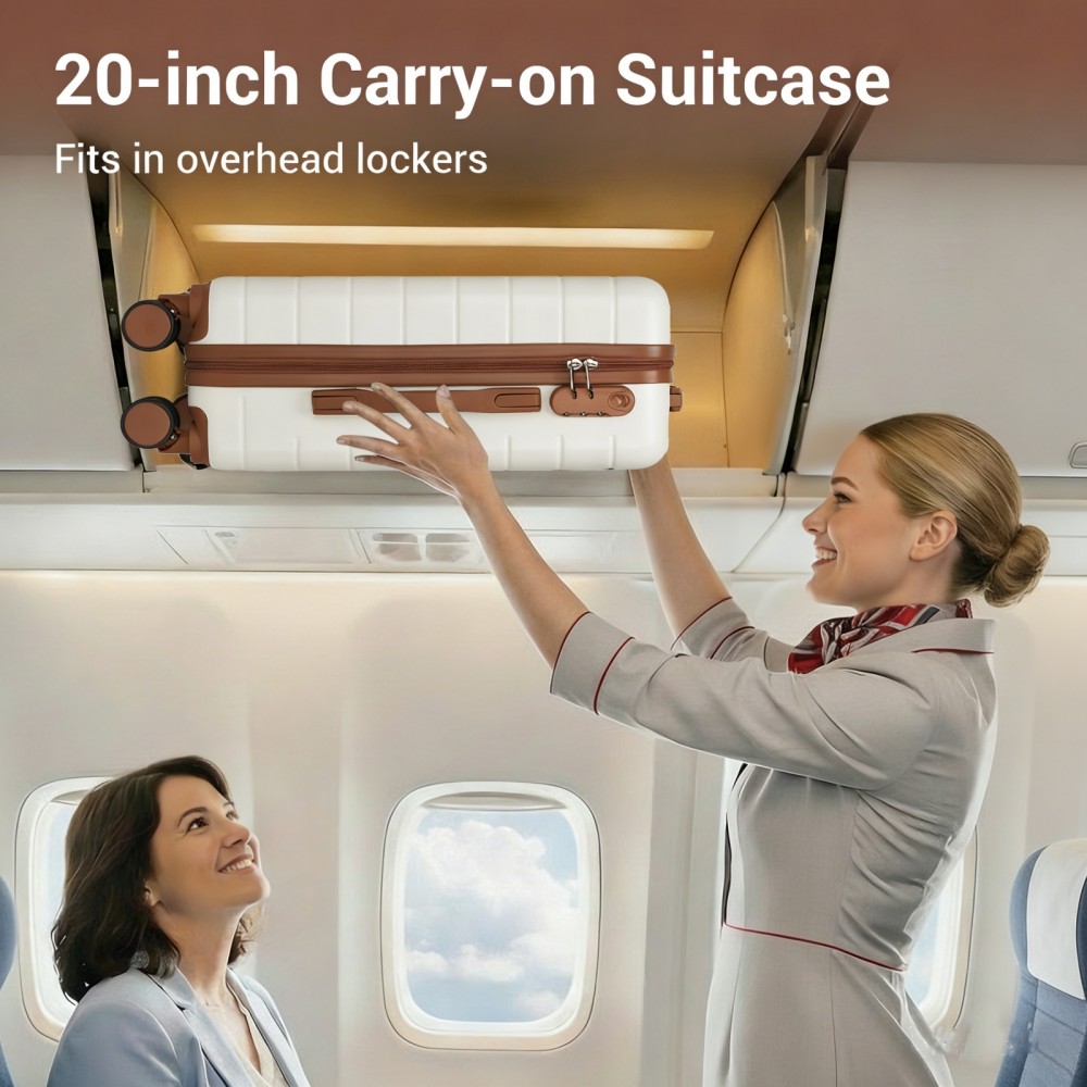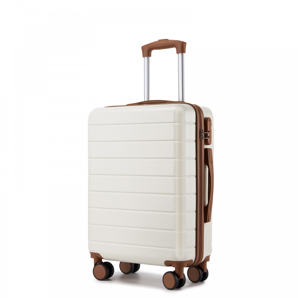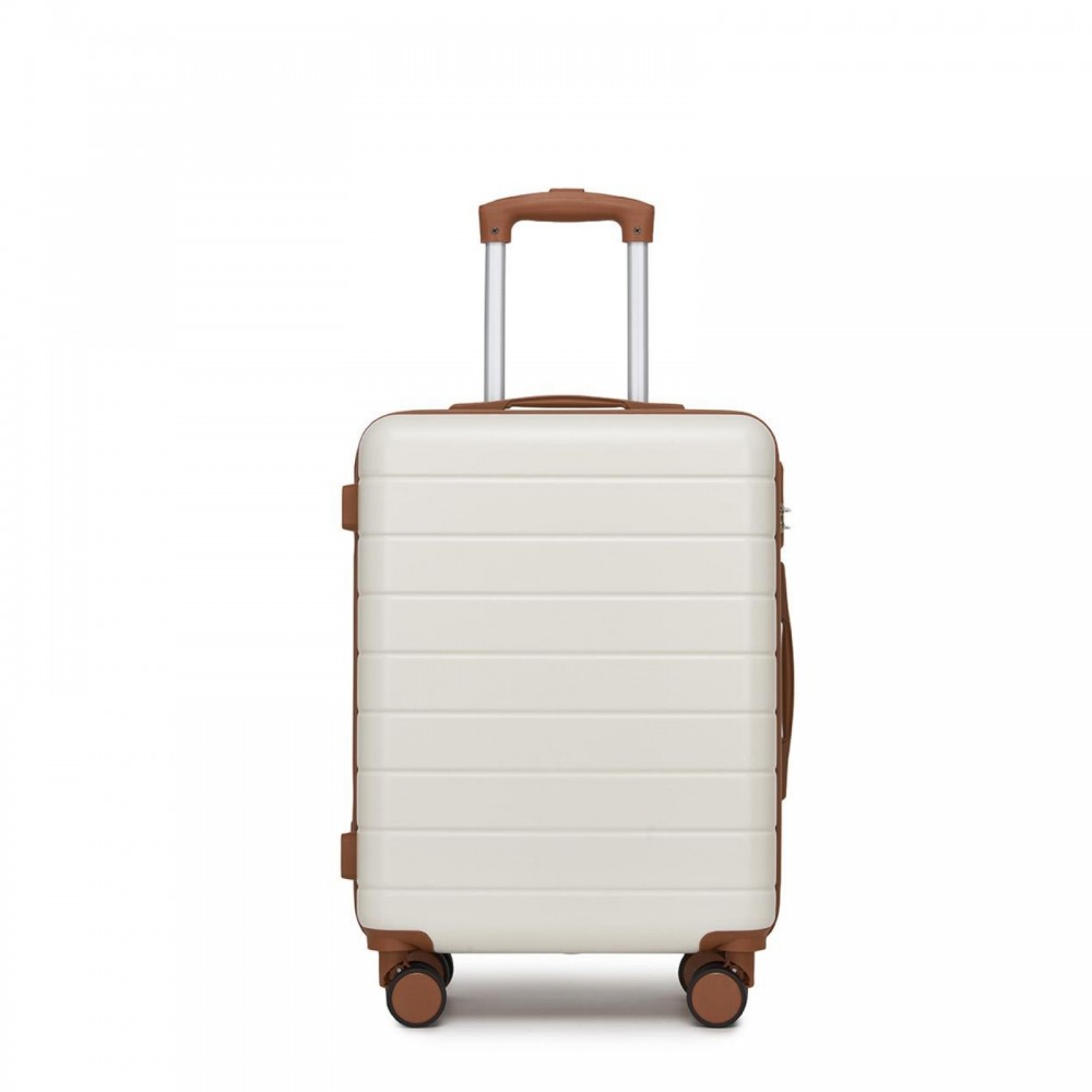 KSN2691 - 20 Zoll Handgepäckkoffer, leichter ABS-Hartschalenkoffer mit 360° lautlosen Rädern, Zahlenschloss und übersichtlichem Innenraum - Creme und Braun