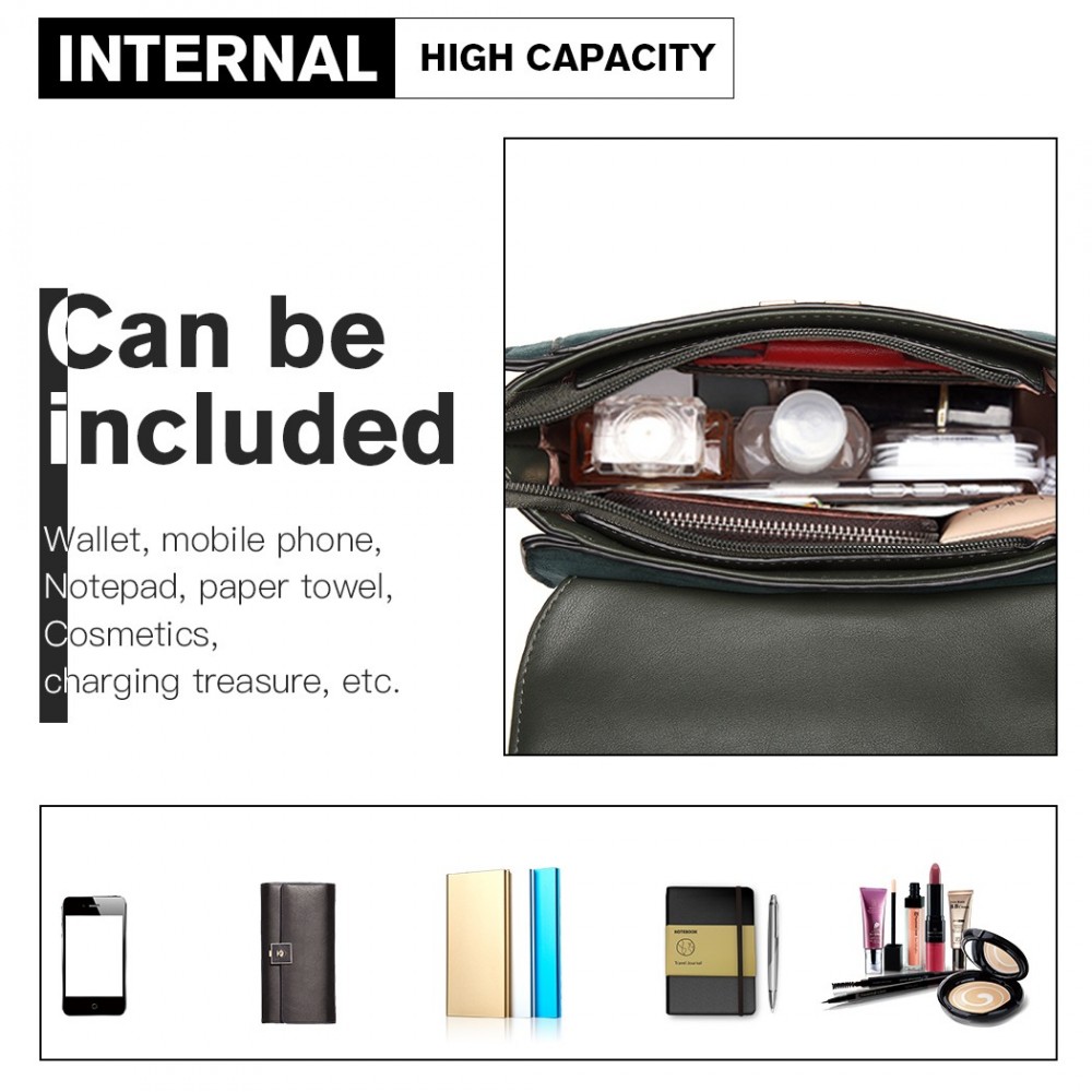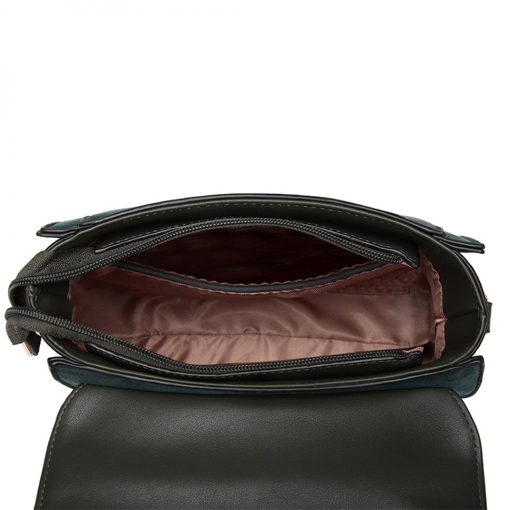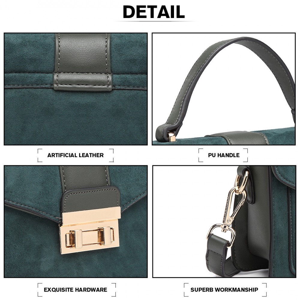LB6872 - Miss Lulu Matte PU-Leder Midi Handtasche Umhängetasche - Grün