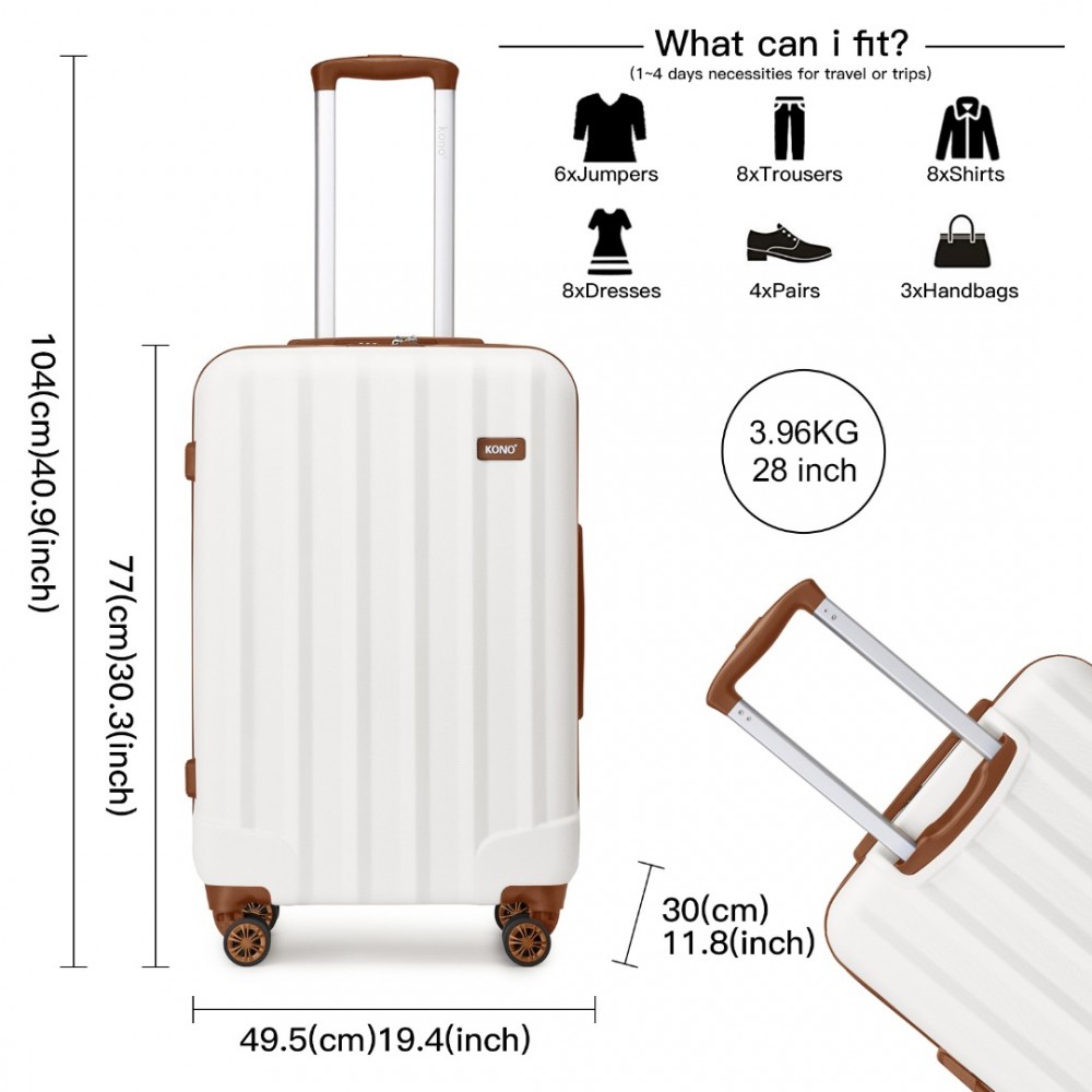 K1773-1L - Kono 28 Zoll Gestreift ABS+PC-Hartschale Reisegepäck mit 360-Grad-Spinner-Rädern - Creme
