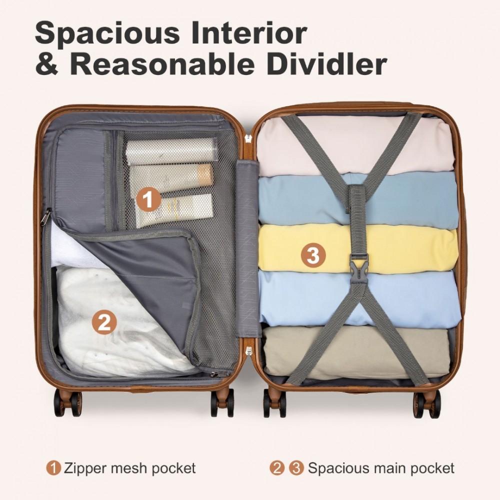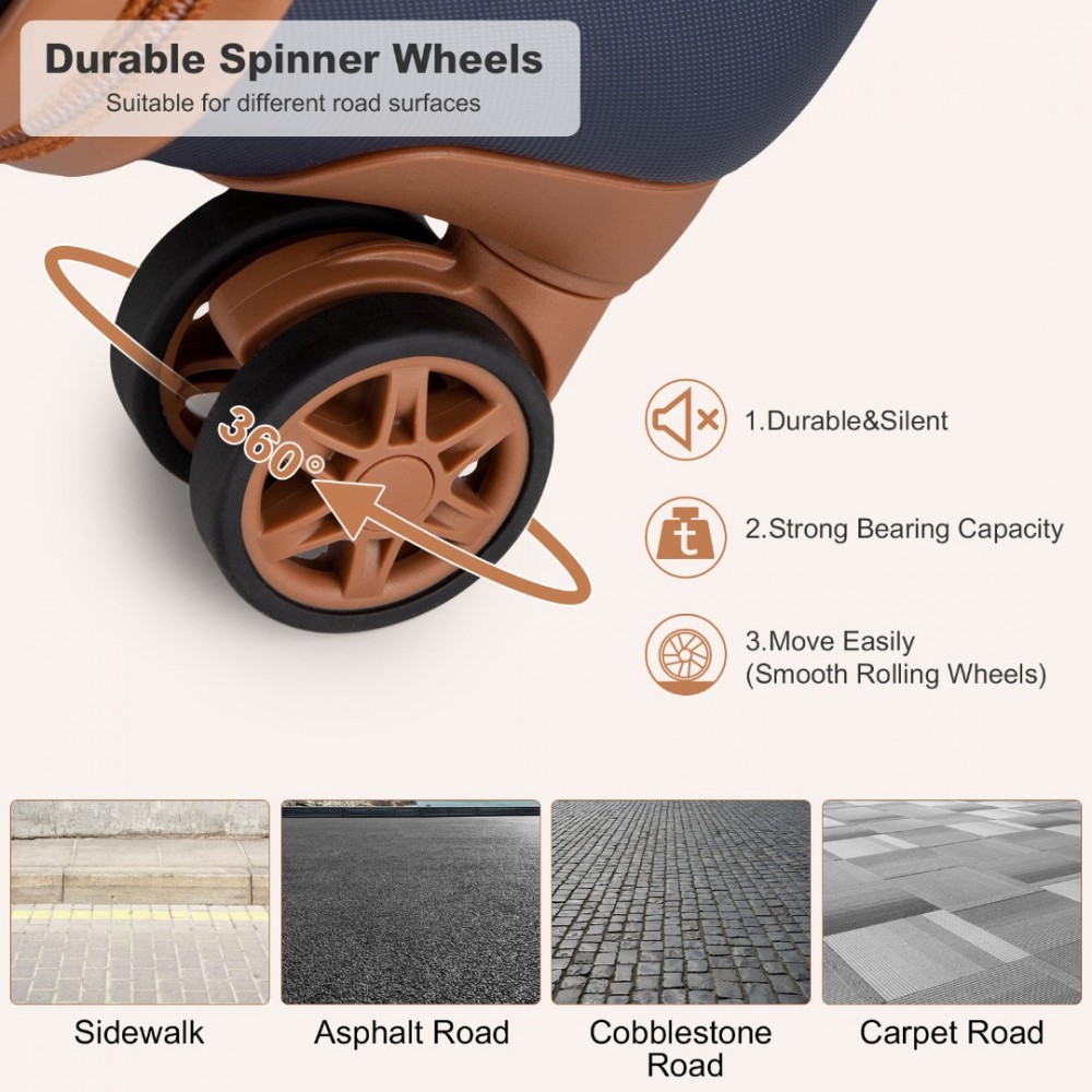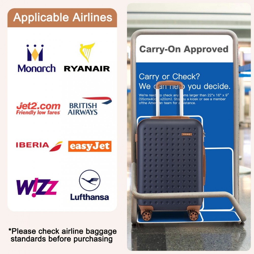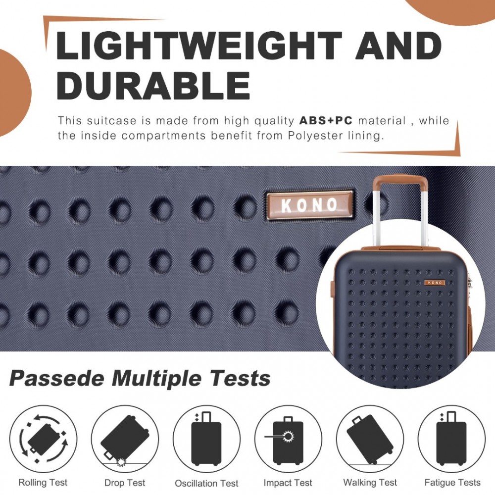 KSK2486 - Kono Stilvoll ABS+PC 20 Zoll Polka Dot Hartschale Kabinen-Koffer Mit TSA-Schloss - Marineblau und Braun