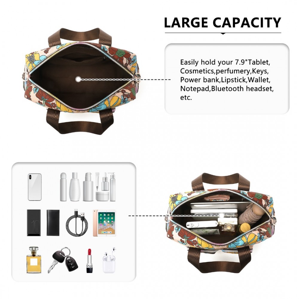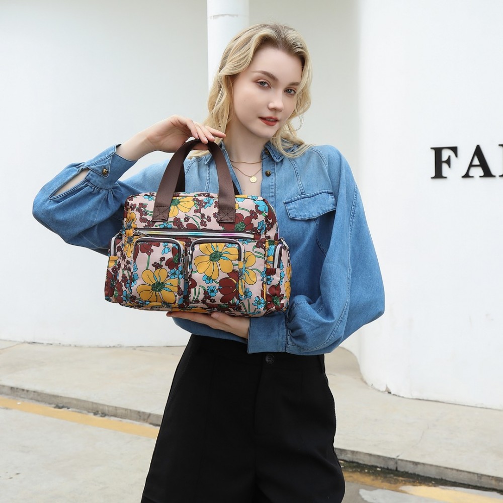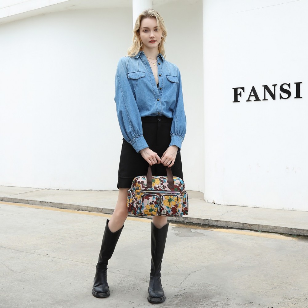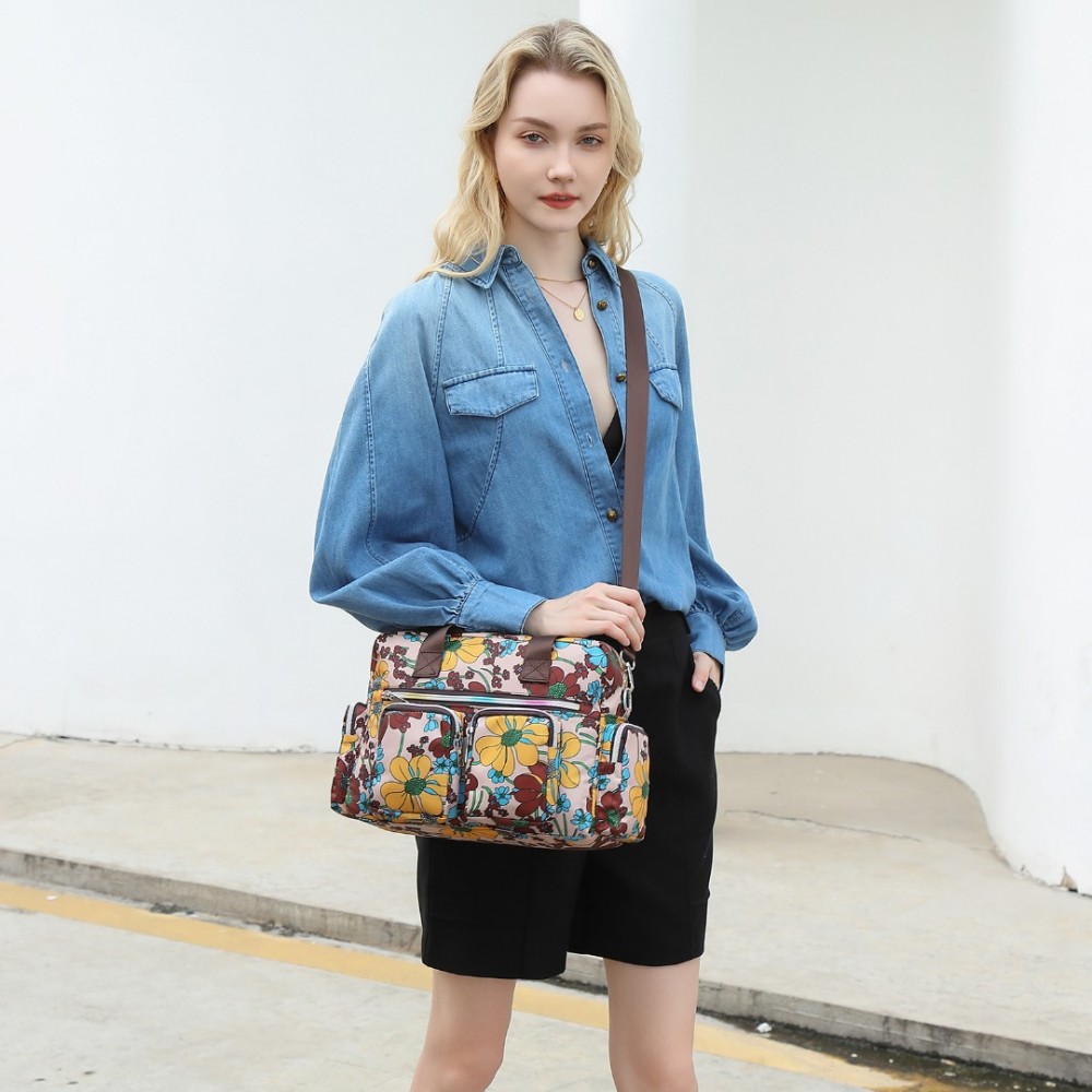 MSK2434F - Kono Vielseitig Mehrfachtasche Reisetasche Mit Einstellbarem abnehmbarem Riemen und Blumendruck - Khaki