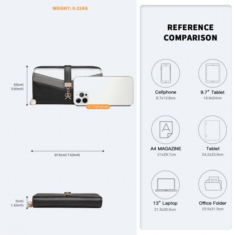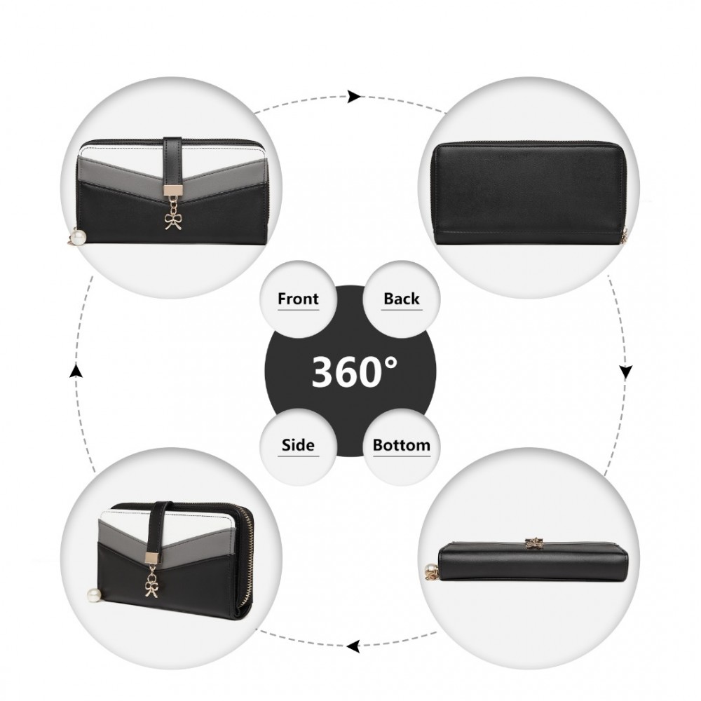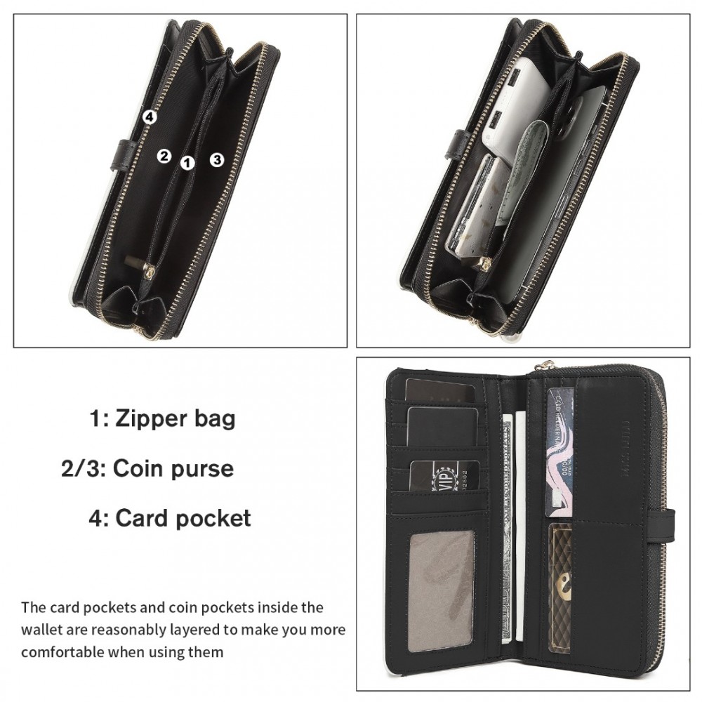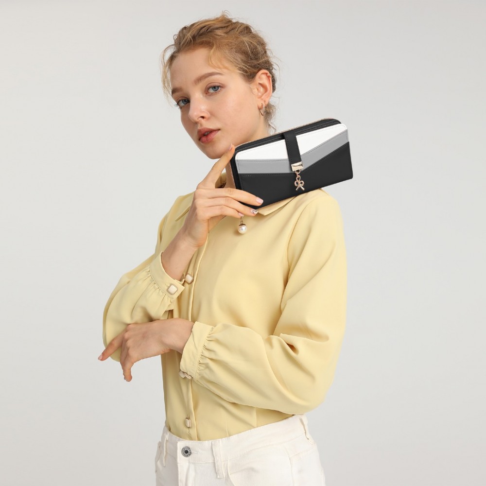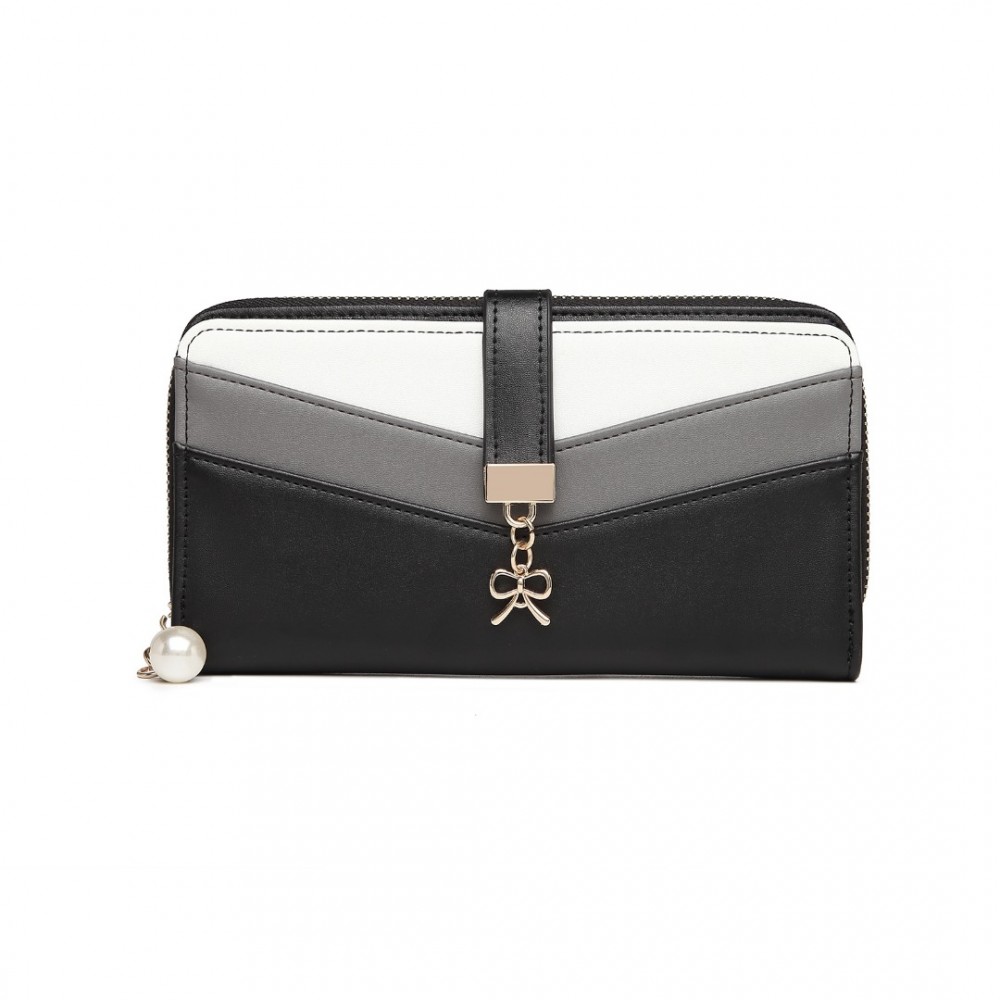 LP2215 - Miss Lulu Gemischte Farbe Damen Lederoptik Portemonnaie - Schwarz