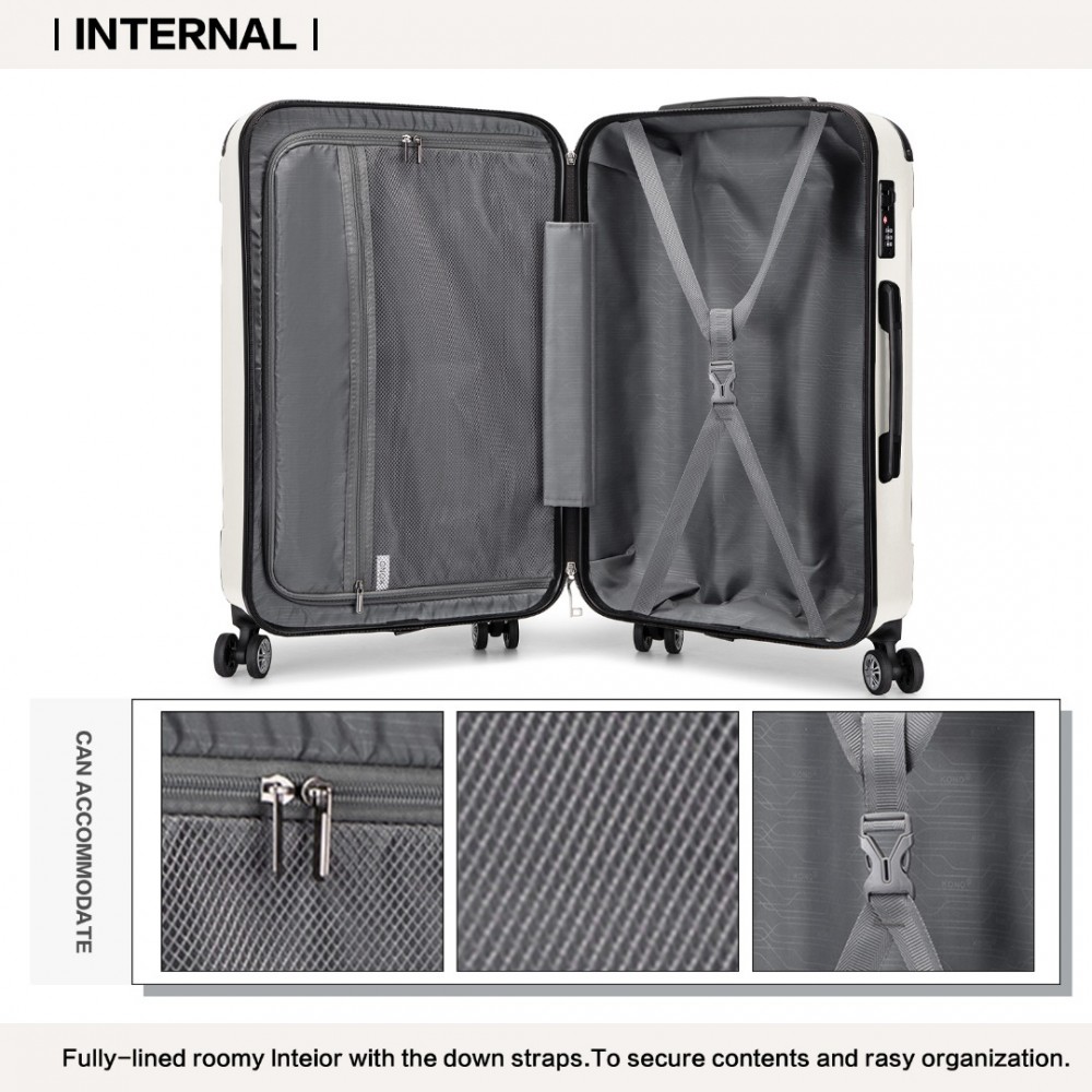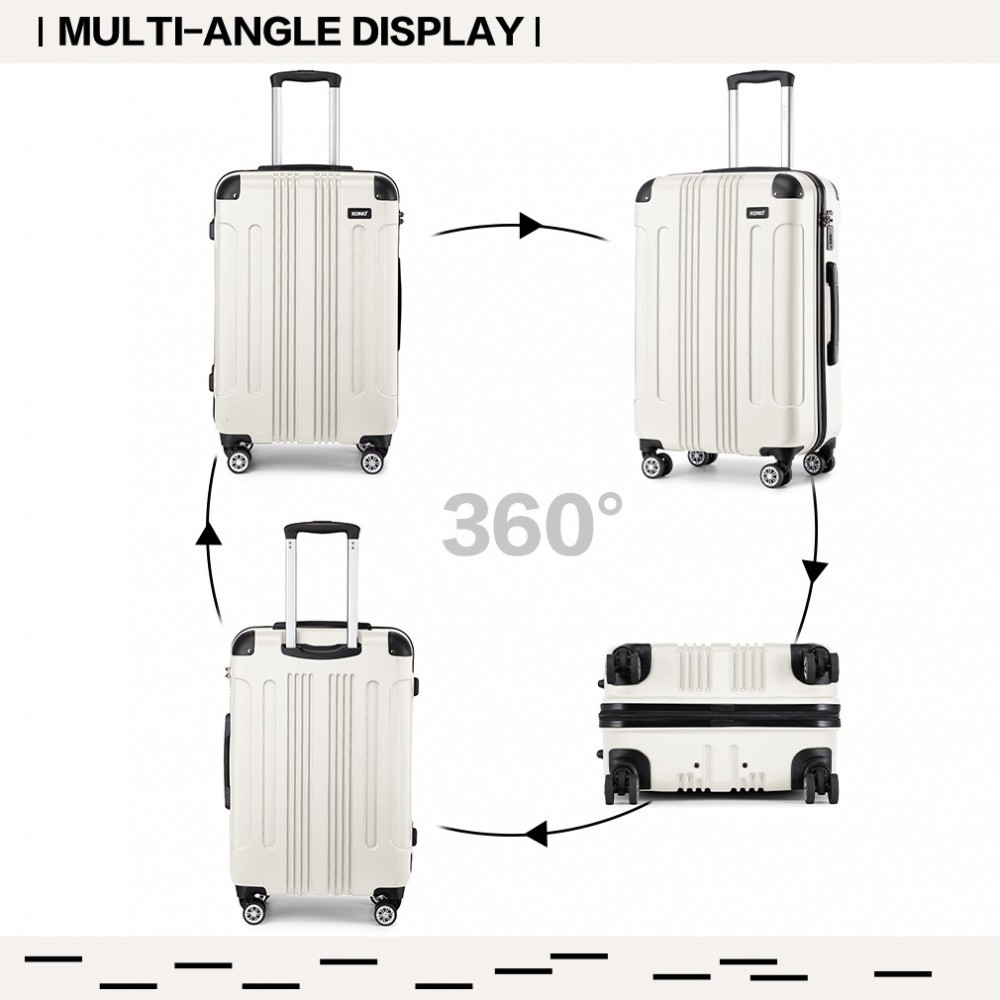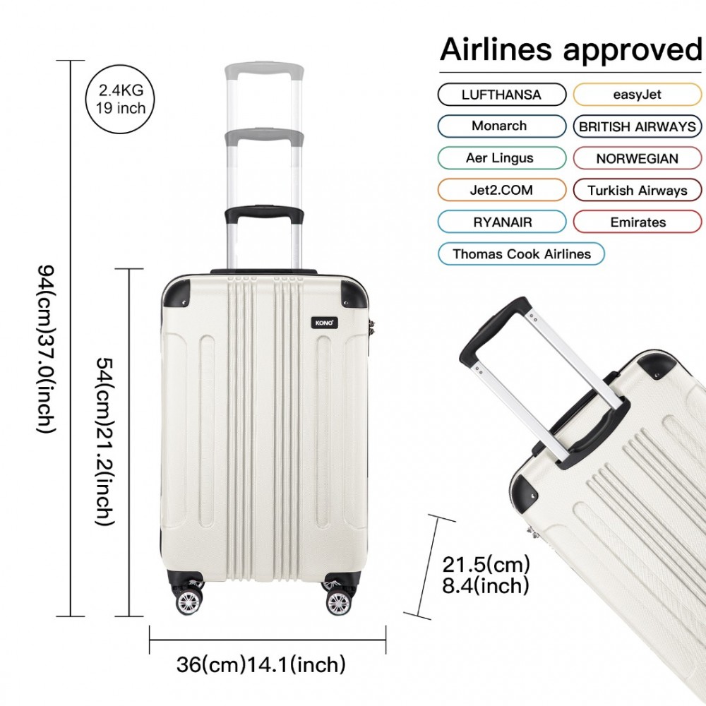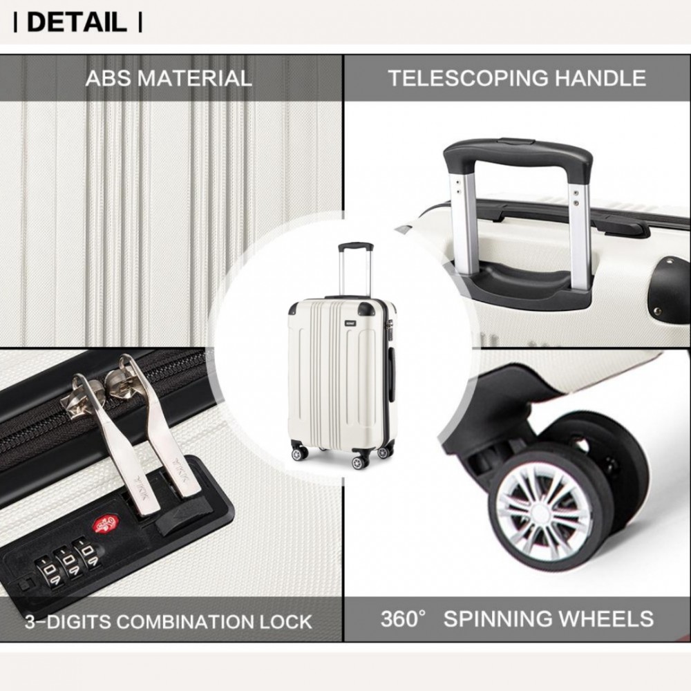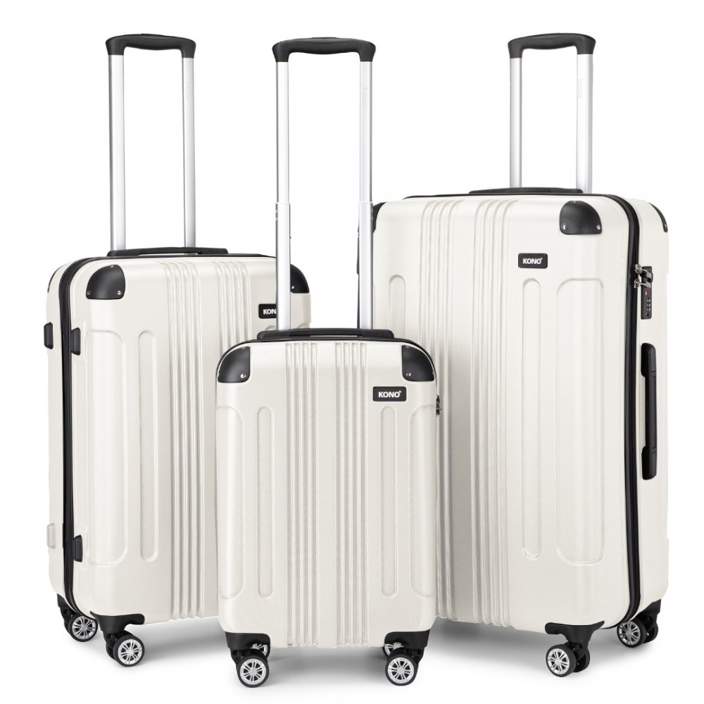K1777-1L - Kono 19/24/28 Zoll 3er Set ABS Leichtes Gewicht Kompakt Hartschale Reisegepäck - Beige