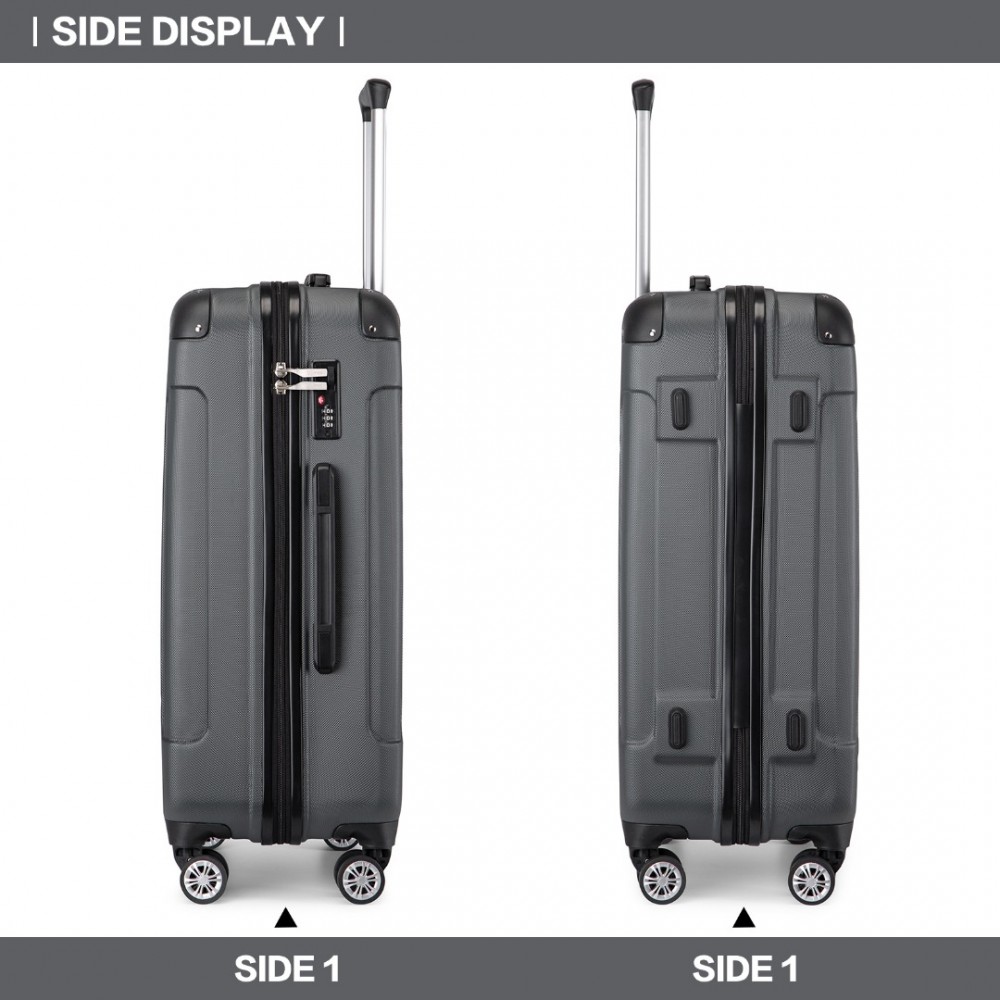 K1777-1L - Kono 19/24/28 Zoll 3er Set ABS Leichtes Gewicht Kompakt Hartschale Reisegepäck - Grau