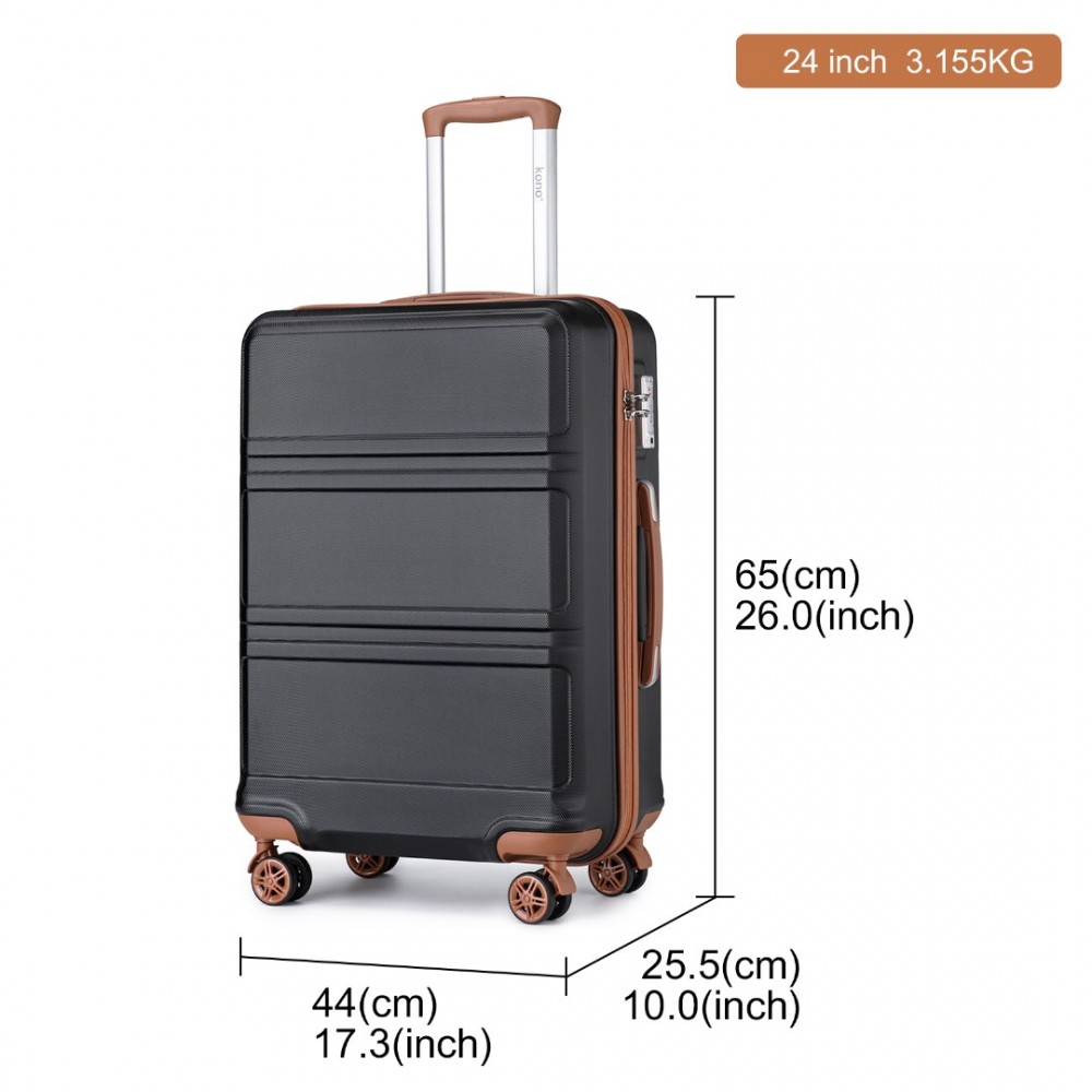 K1871-1L - Kono ABS 24 Zoll geformter horizontaler Design-Koffer - Schwarz und Braun