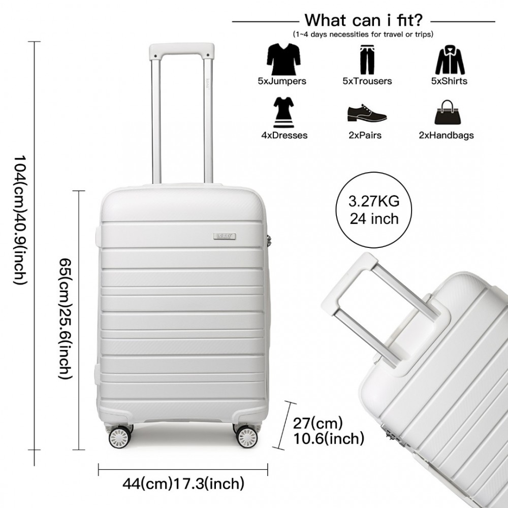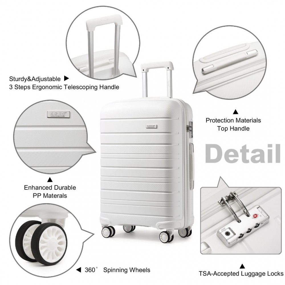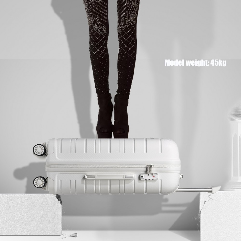 K2091L - Kono 24-Zoll-Hartschalen-PP-Koffer mit Multi-Textur - Classic Collection - Weiß