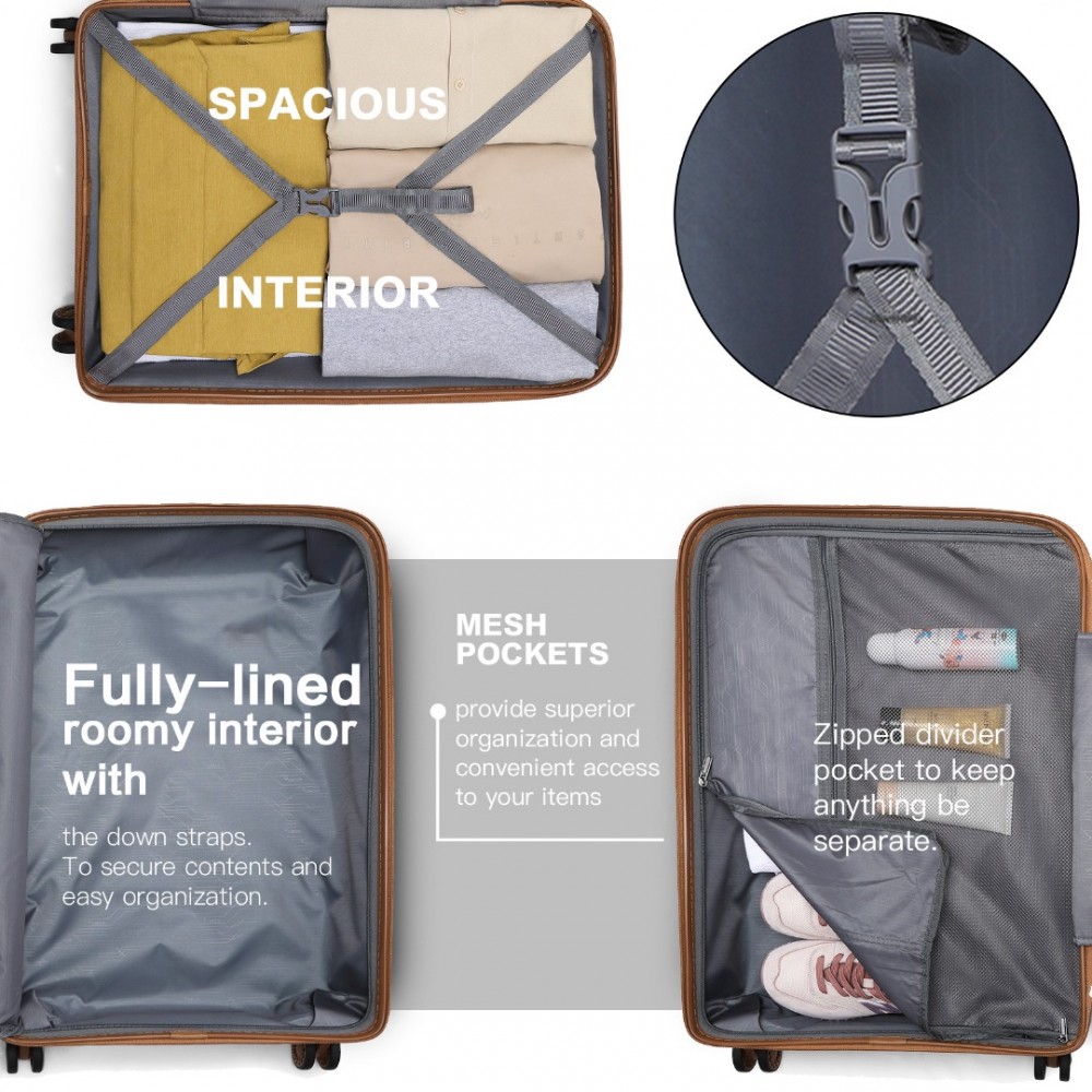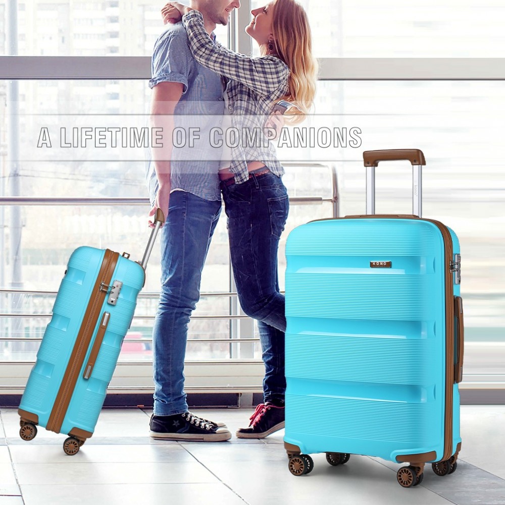 K2092L - Kono 20 Zoll Helles PP Hartschalen-Handgepäck in Kabinengröße - Blau und Braun