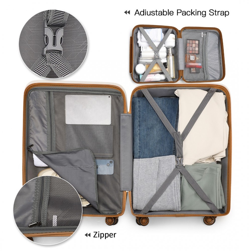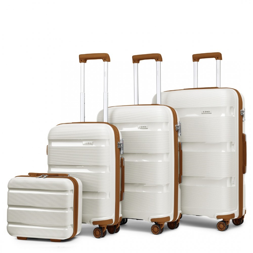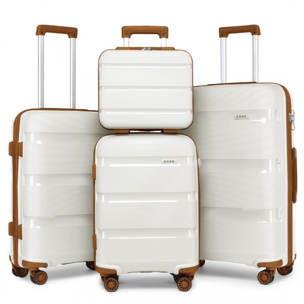 K2092L - Kono Helles Hartschale PP-Koffer Mit TSA-Schloss und Schminkkoffer 4er Set - Klassische Kollektion - Creme