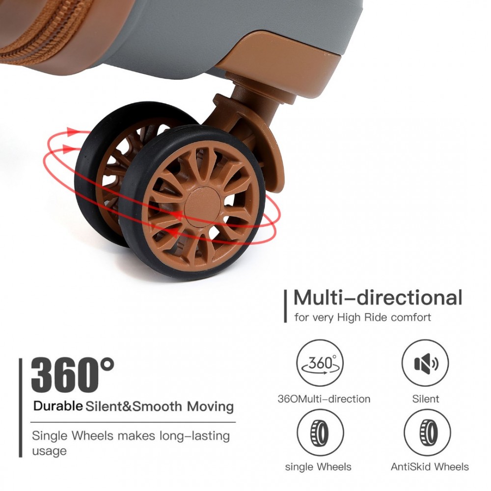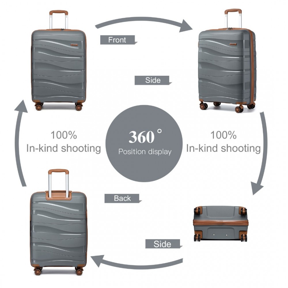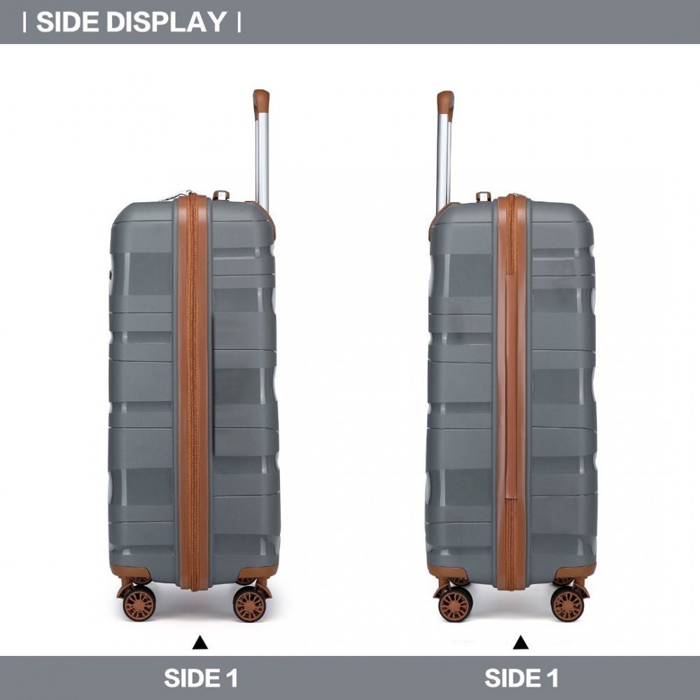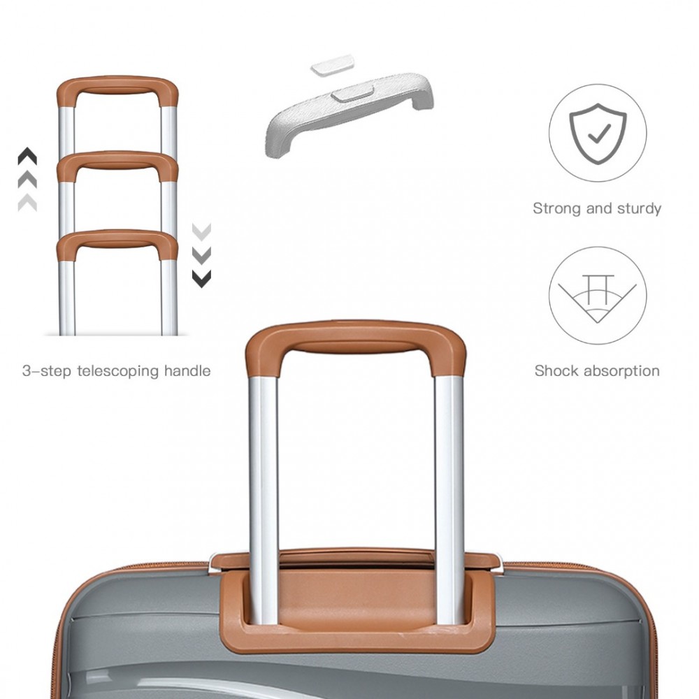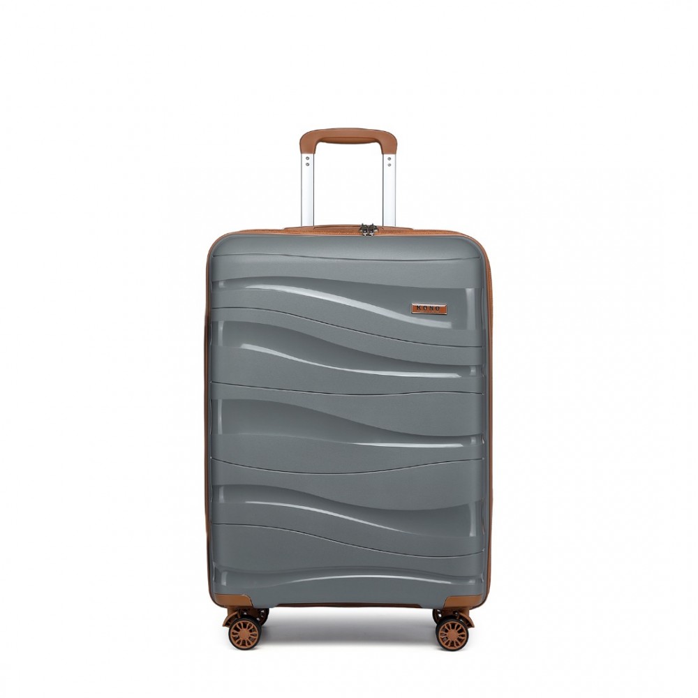 K2094L - Kono 20 Zoll Leicht Polypropylen Hartschalenkoffer Mit TSA-Schloss - Grau und Braun