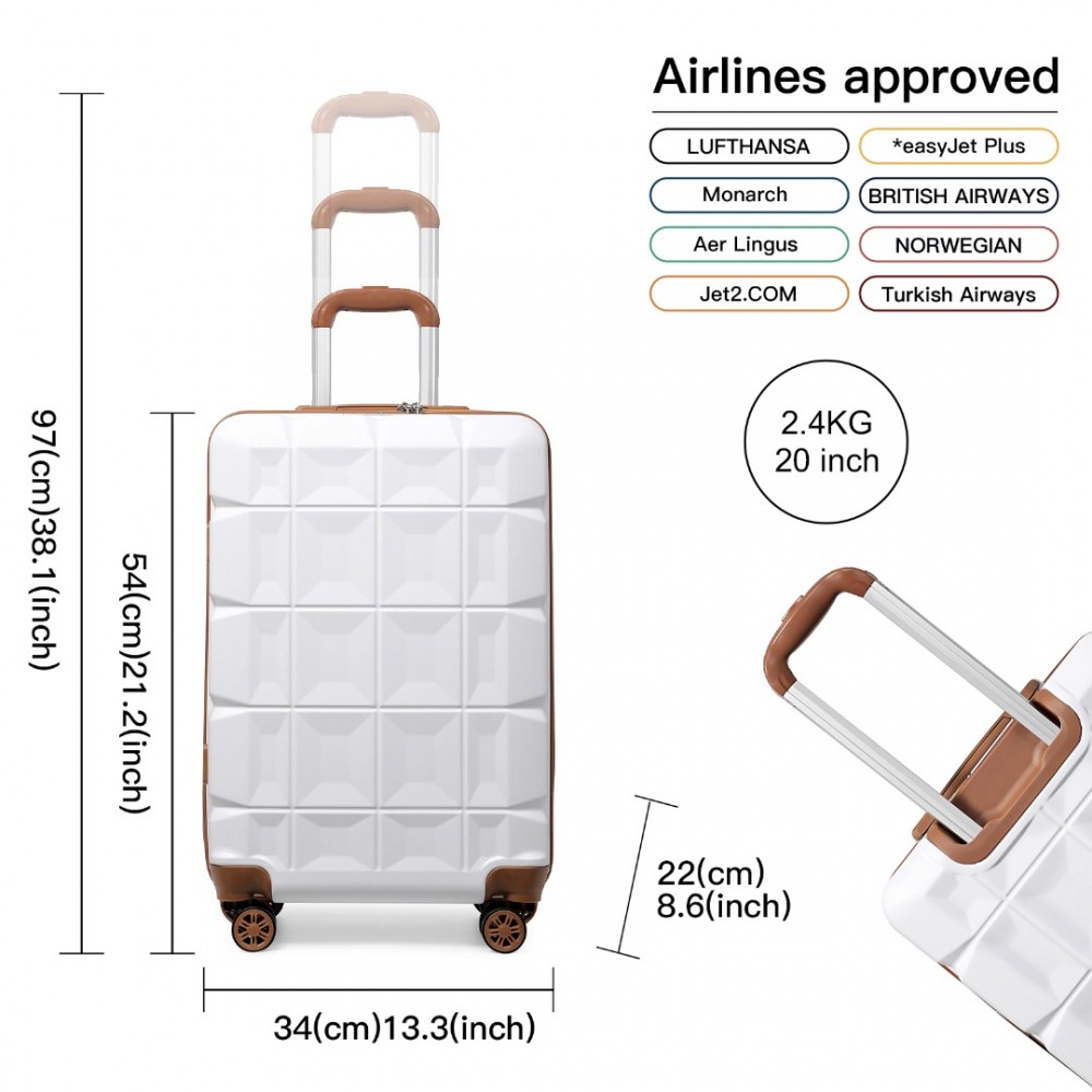 K2292L - Kono 20 Zoll Leicht Hartschalen-ABS-Gepäck Kabinenkoffer Mit TSA-Schloss - Weiß