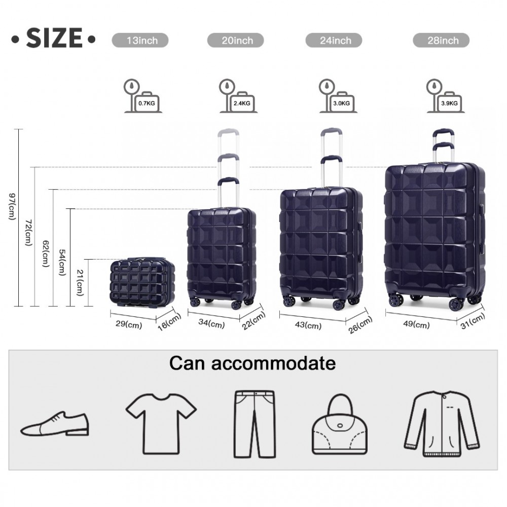 K2292L - Kono Leichtgewicht Hartschalen-ABS-Koffer Mit TSA-Schloss und Schminkkoffer 4teiliges Set - Marine